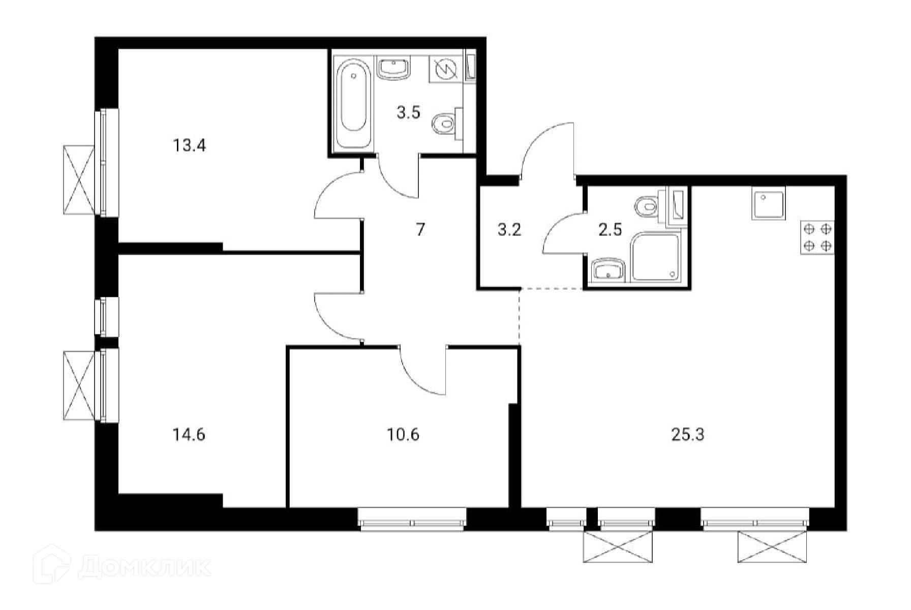 Площадь кухни 25.3 м2