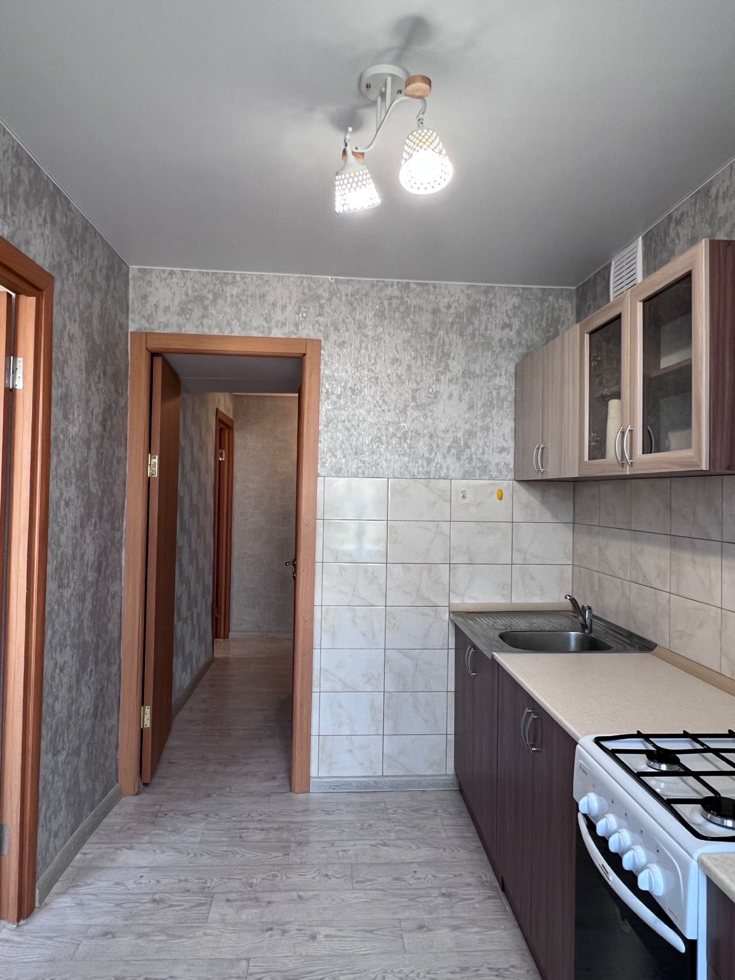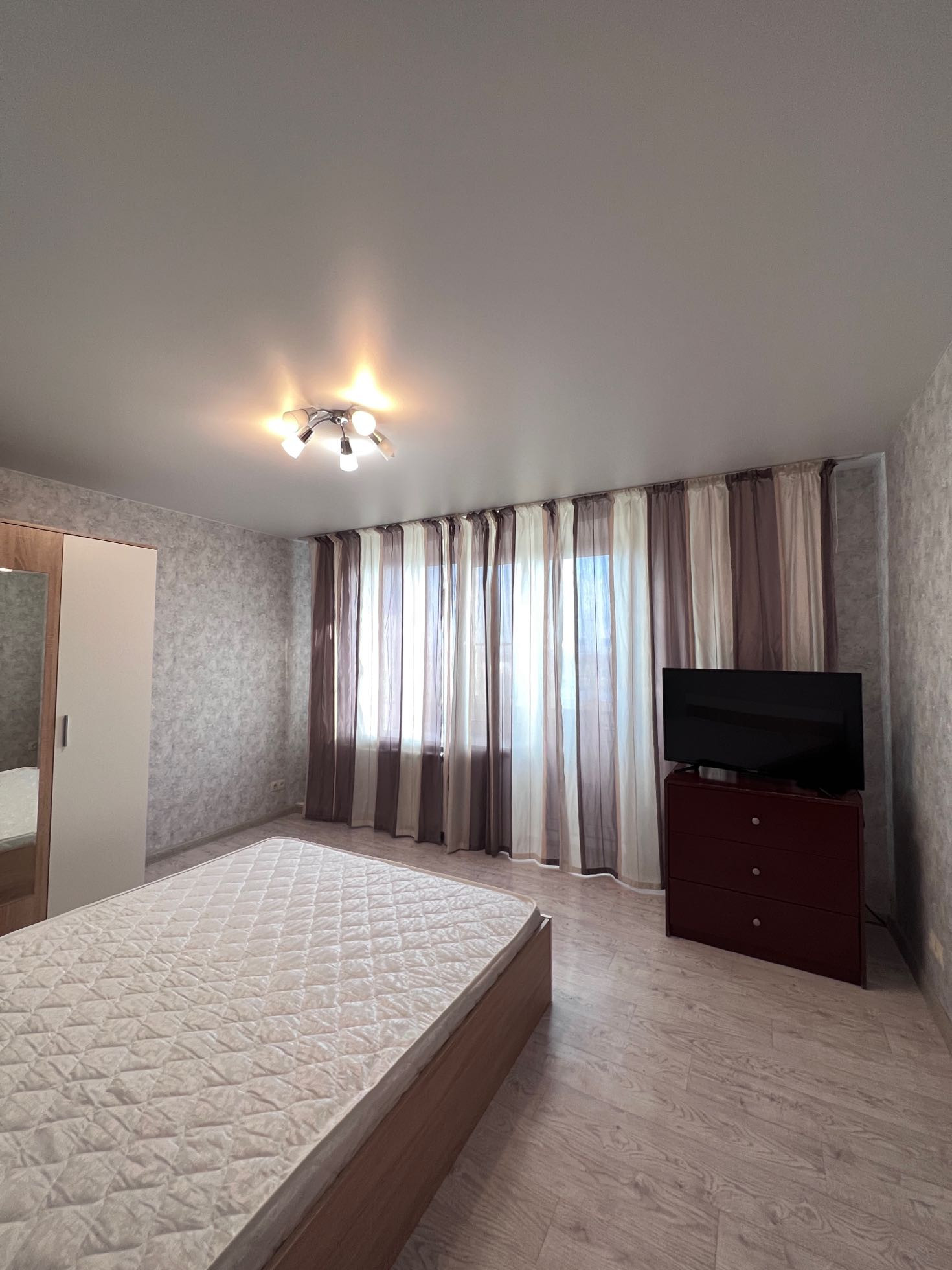 В квартире был сделан ремонт: проводка новая, балкон застеклен, стеклопакеты новые, подвесной потолок новый.