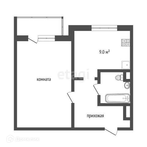 Балкон, лоджия 1 балкон