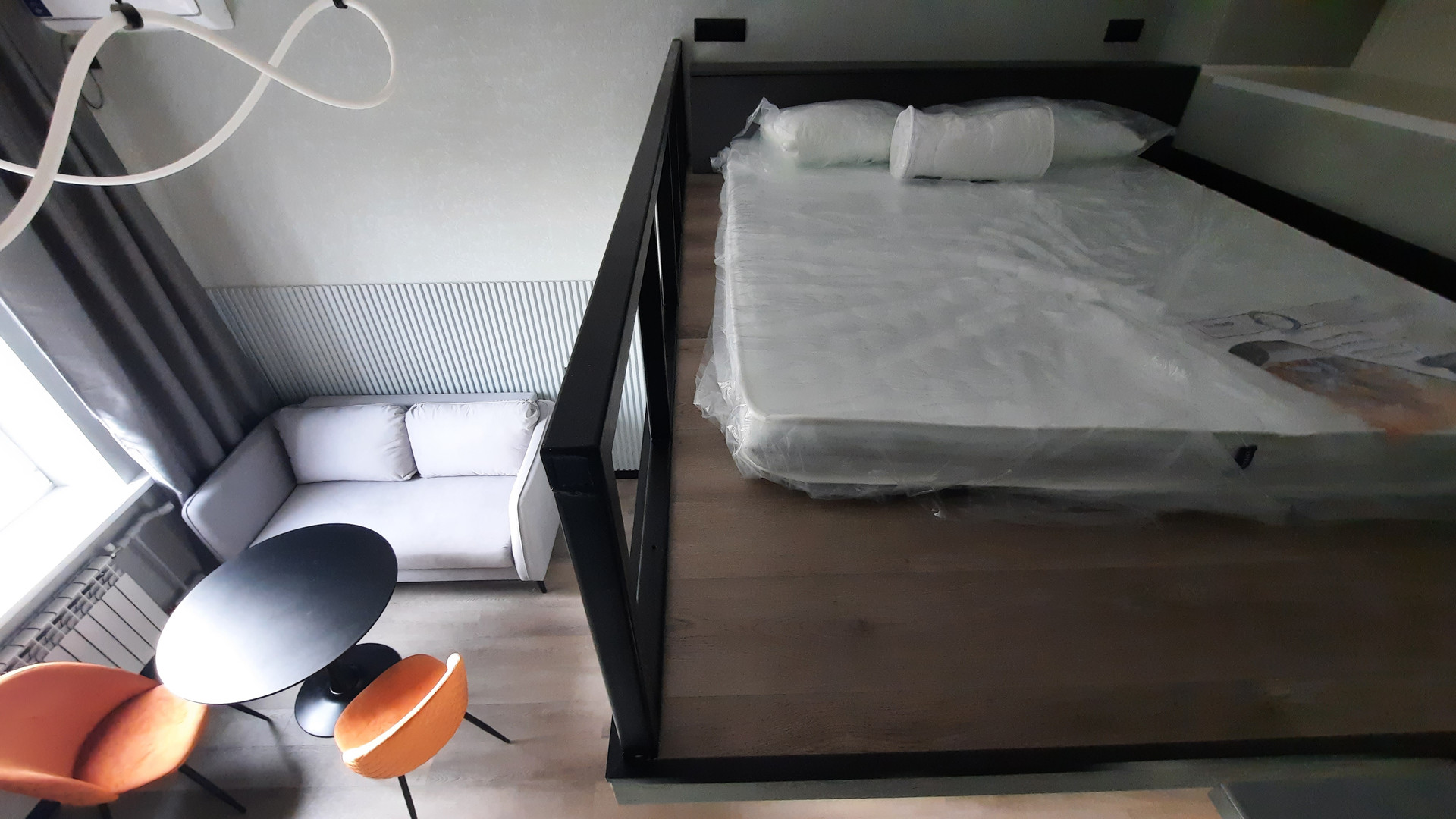 В апартаменте полностью дизайнерский ремонт, все сделано качественно, функционально, соблюдена эргономика пространства, выполнена антресоль со спальным местом и местами для хранения.