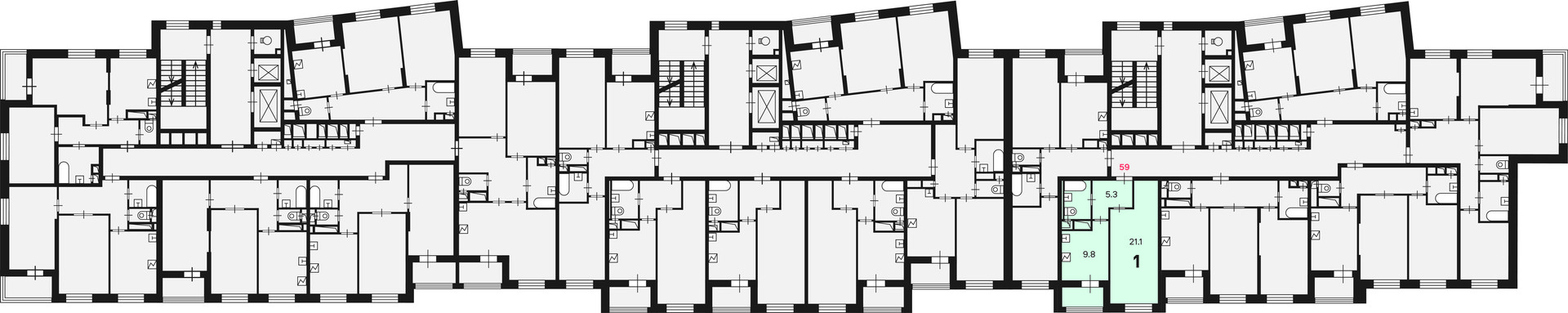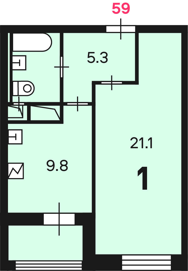 Жилая площадь 21.1 м2
