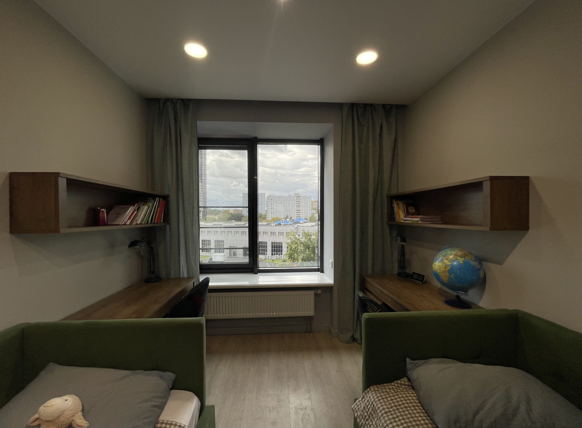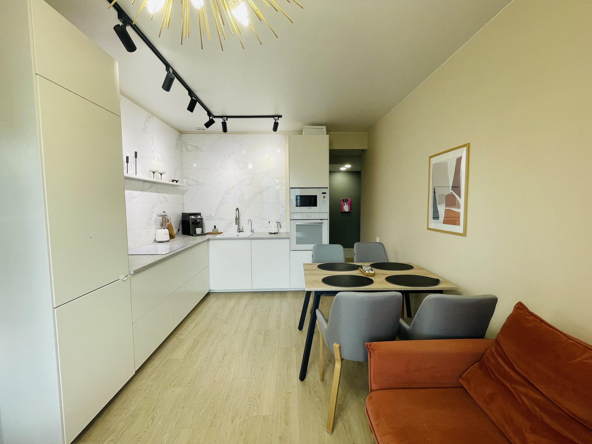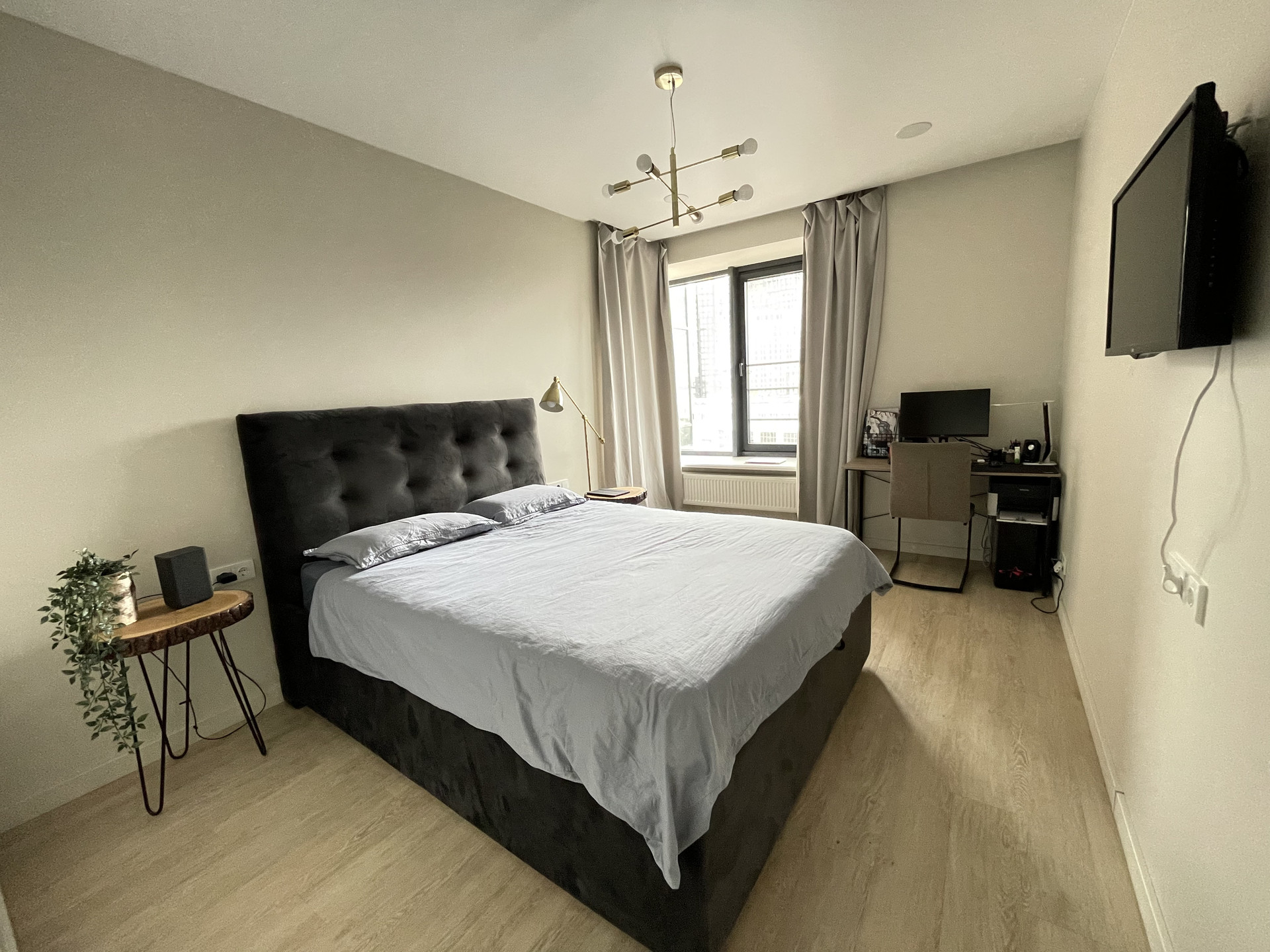 Планировка: две изолированный спальни, кухня-гостиная, гардеробная, сан узел.