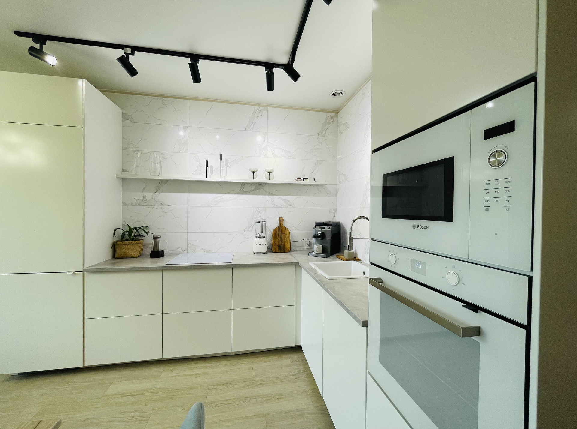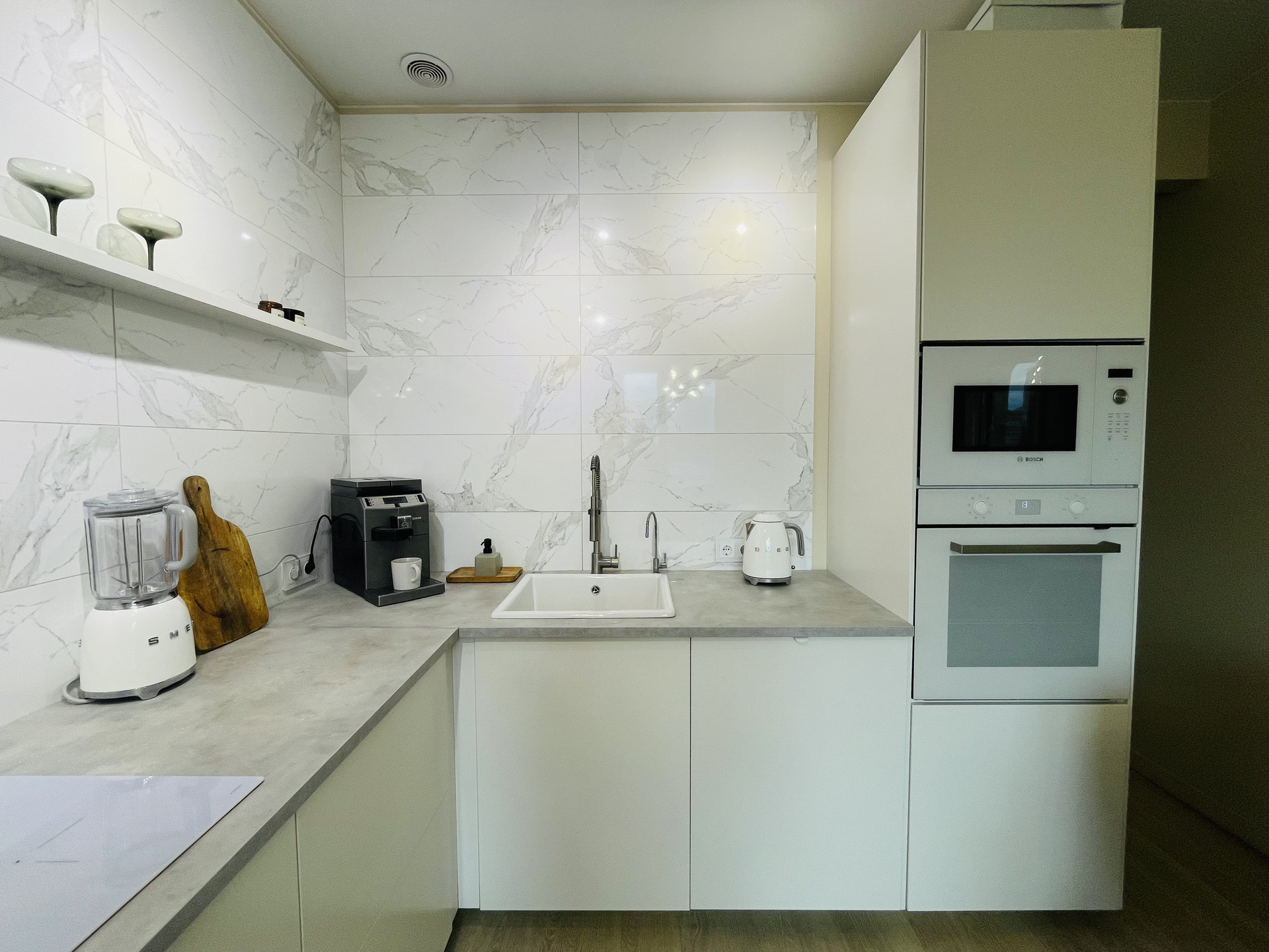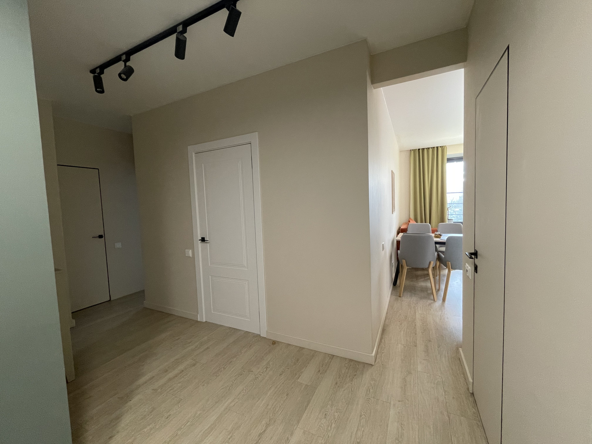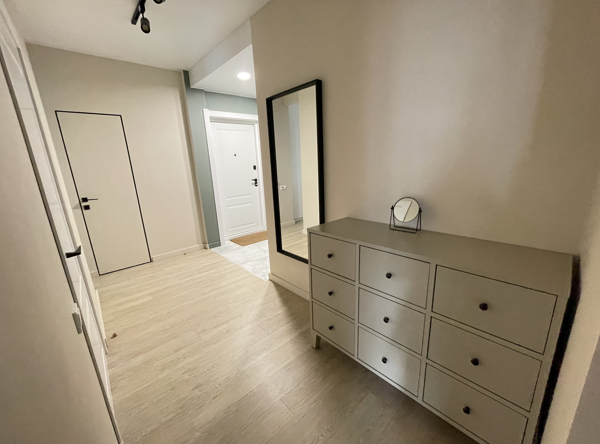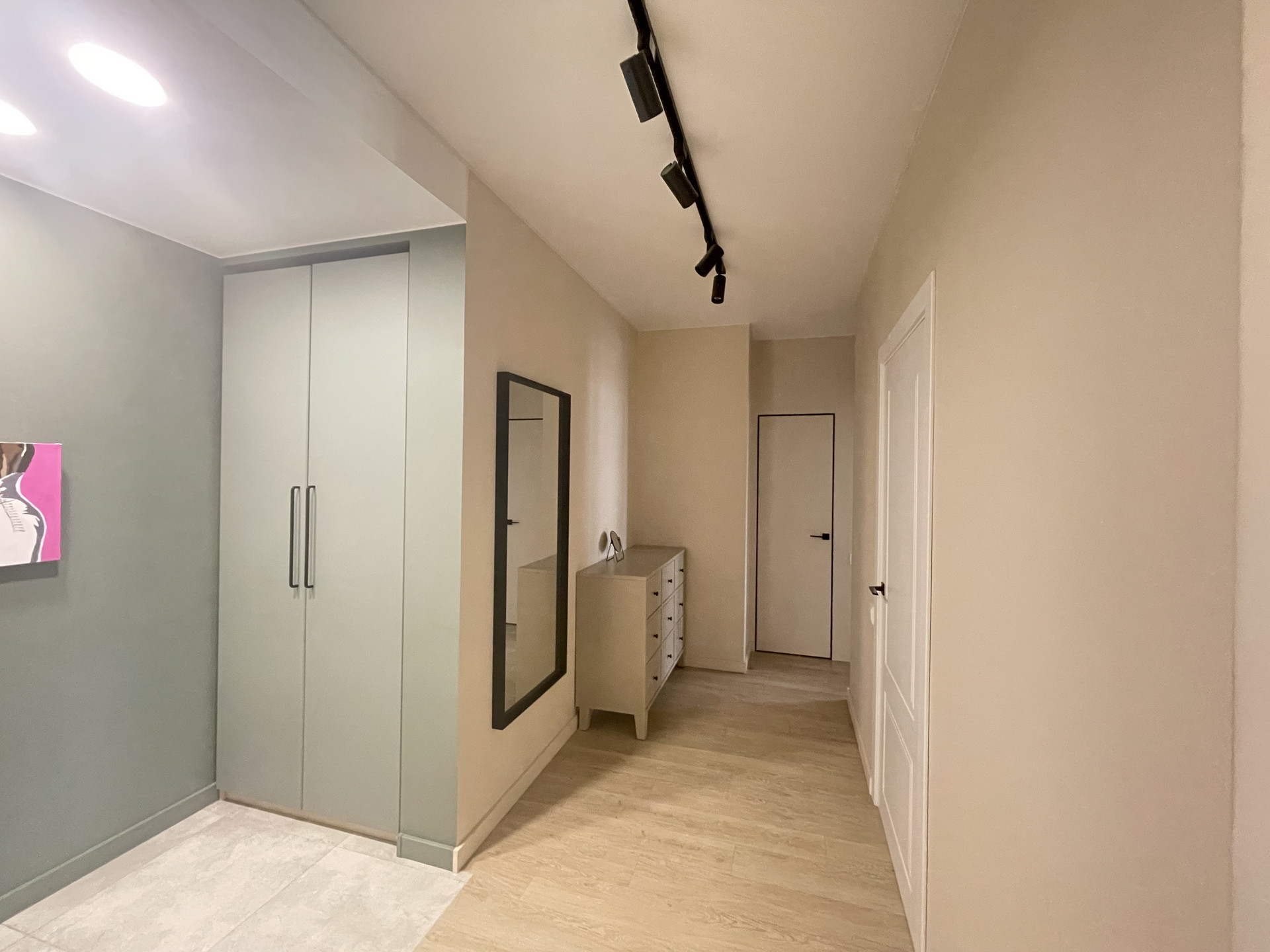 Качественный  ремонт выполнен в пастельных тонах из дорогих материалов.