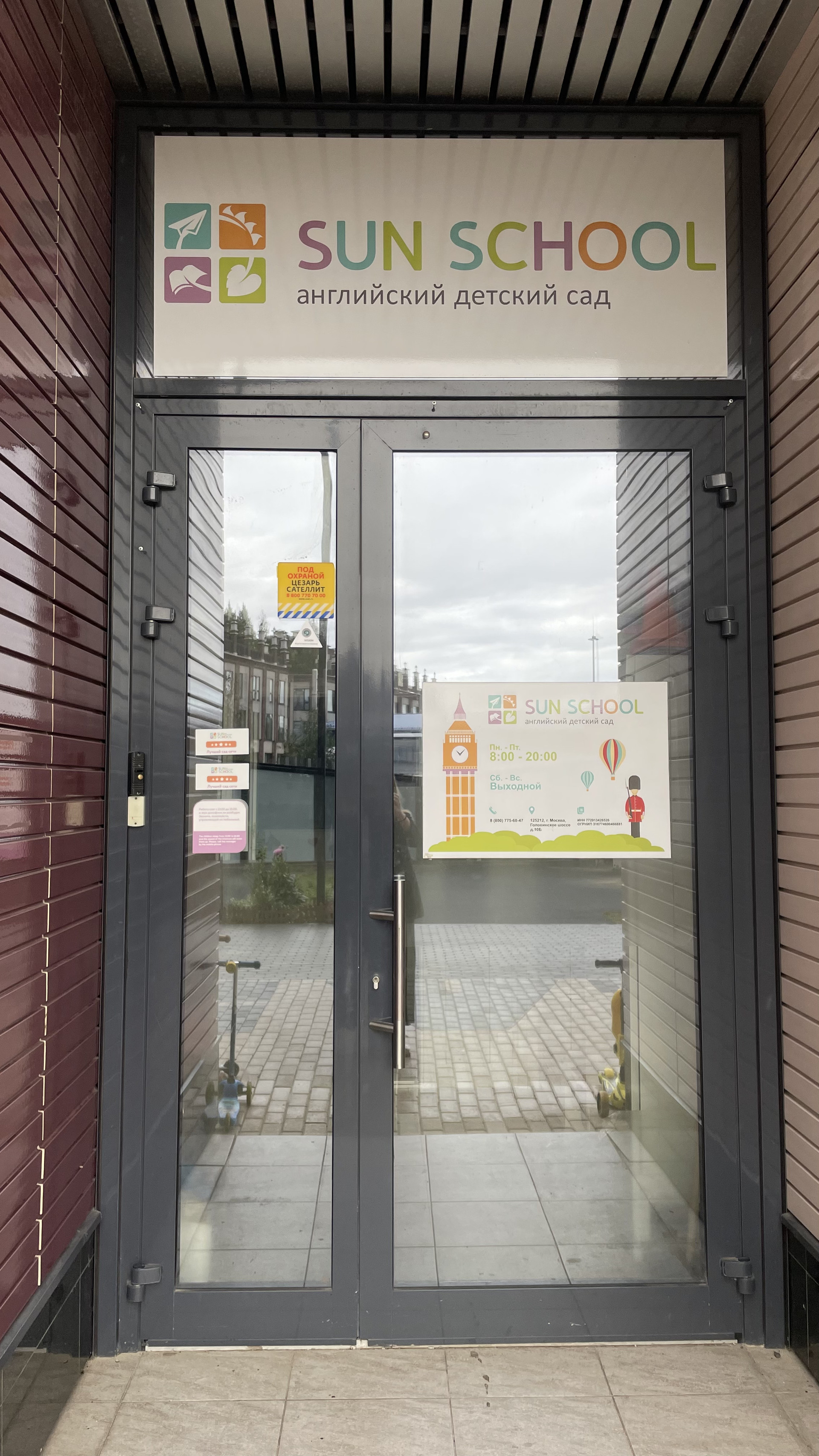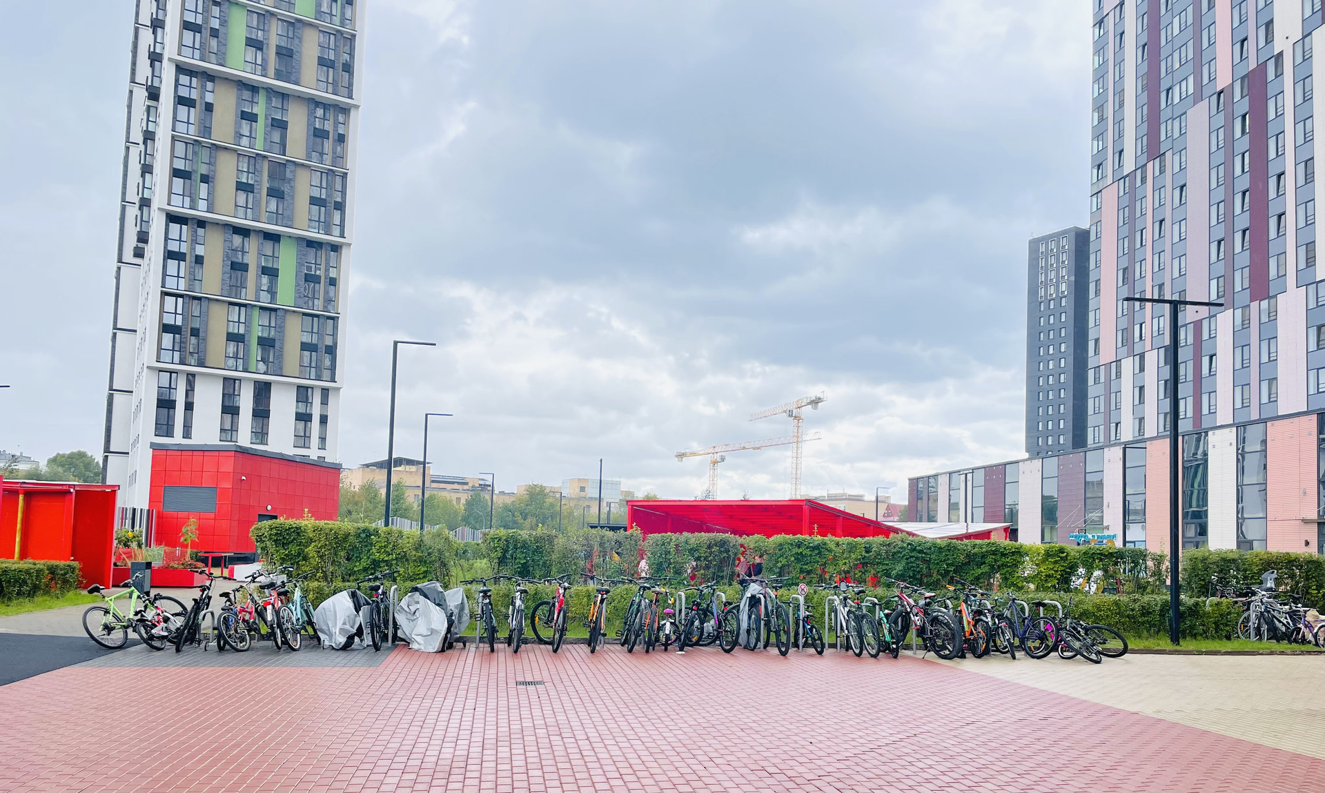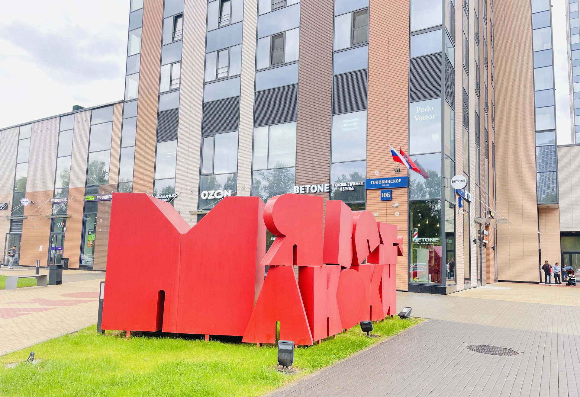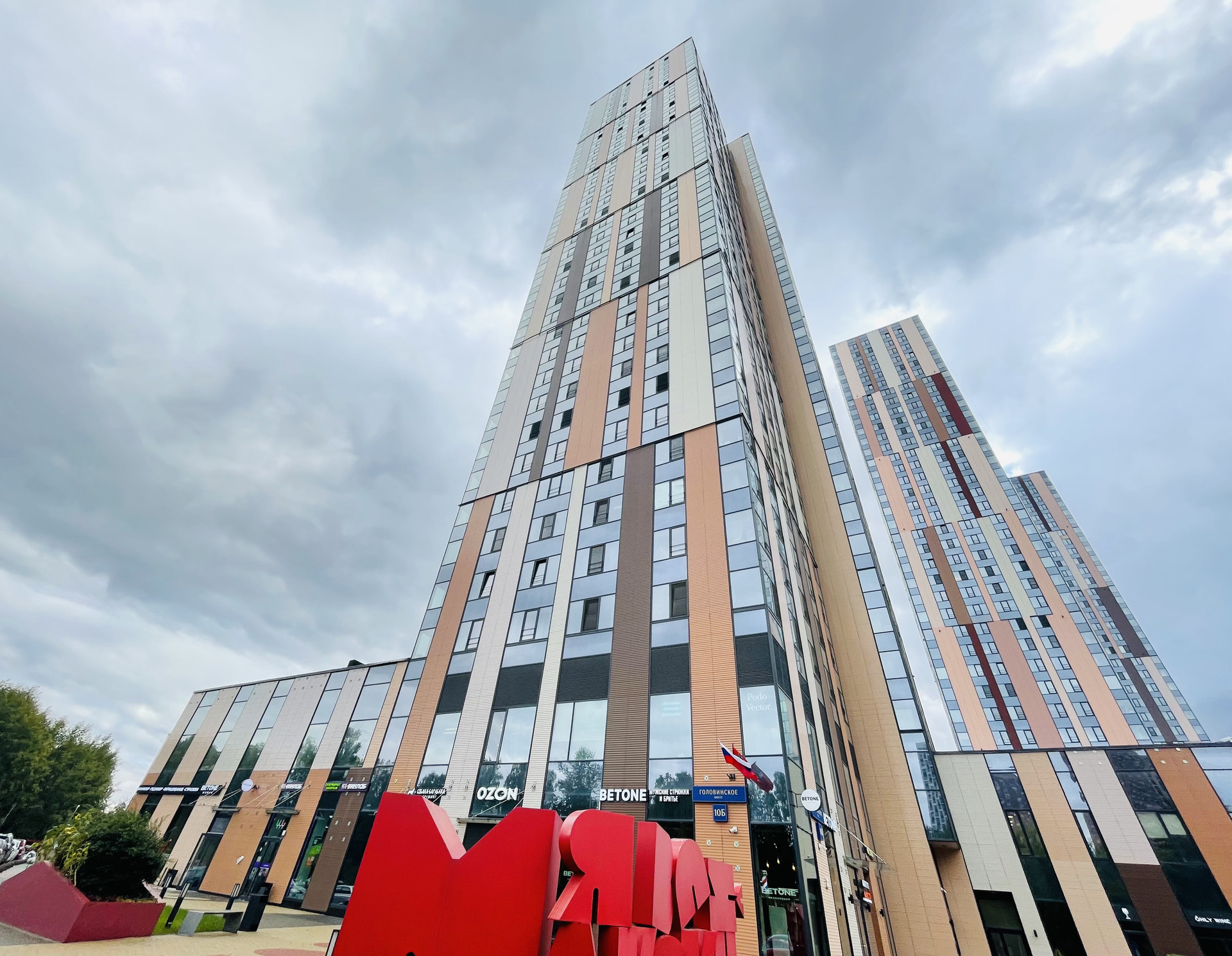 В доме два детских сада, школа, детский бассейн, фитнес клуб с бассейном, кафе, рестораны, магазины, аптеки.