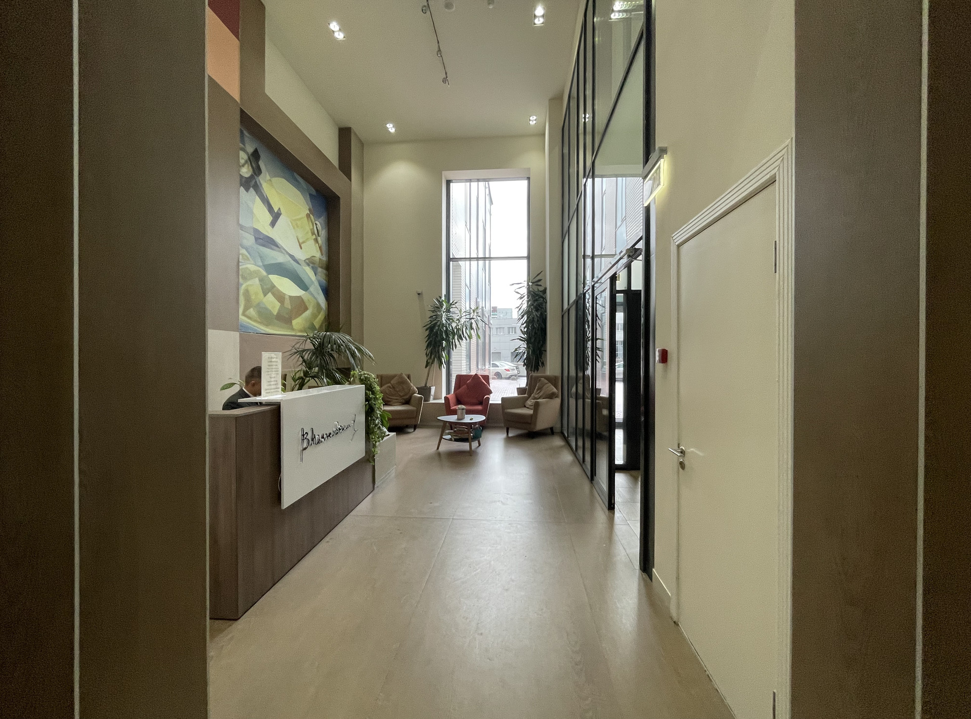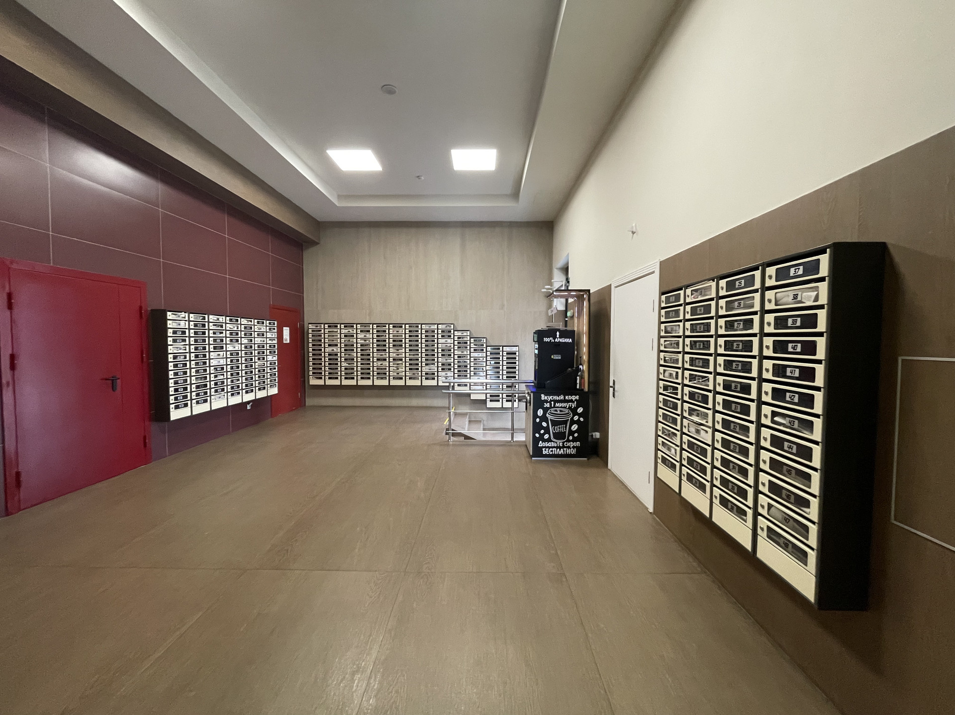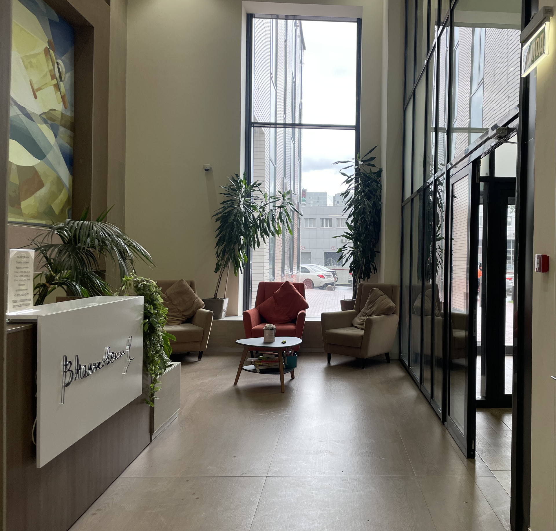 Красивые входные группы, лобби с круглосуточным секьюрити-ресепшн, выход из подъезда на улицу и на внутреннюю территорию.