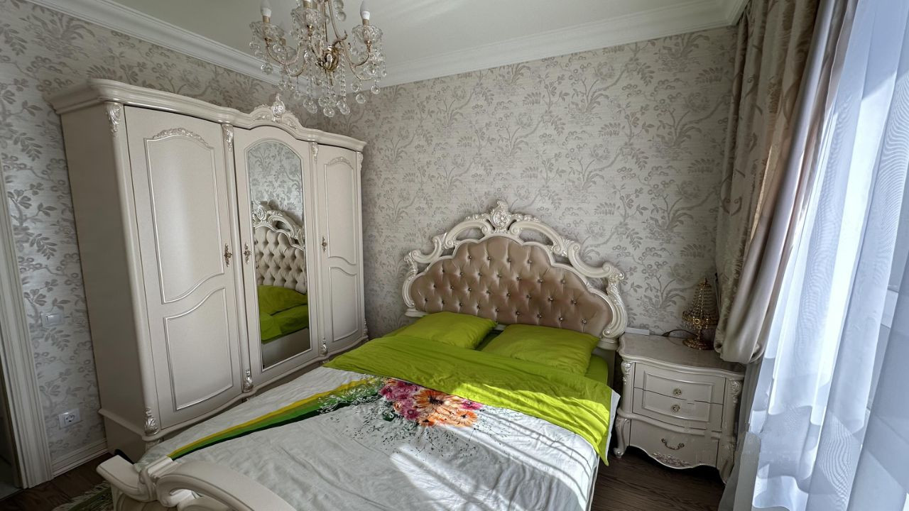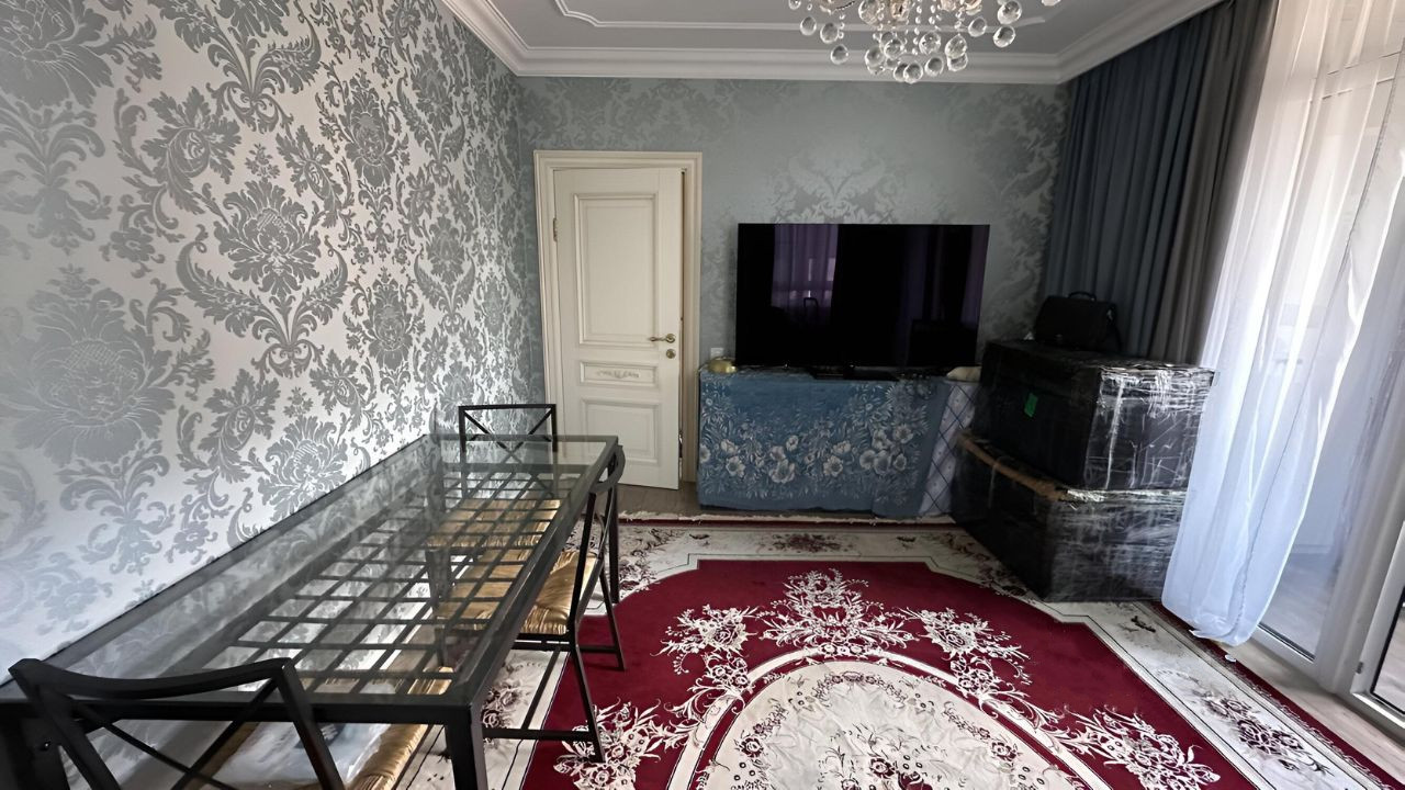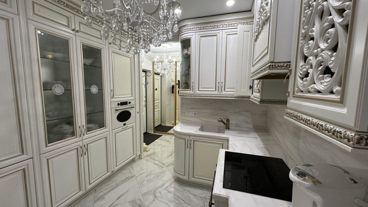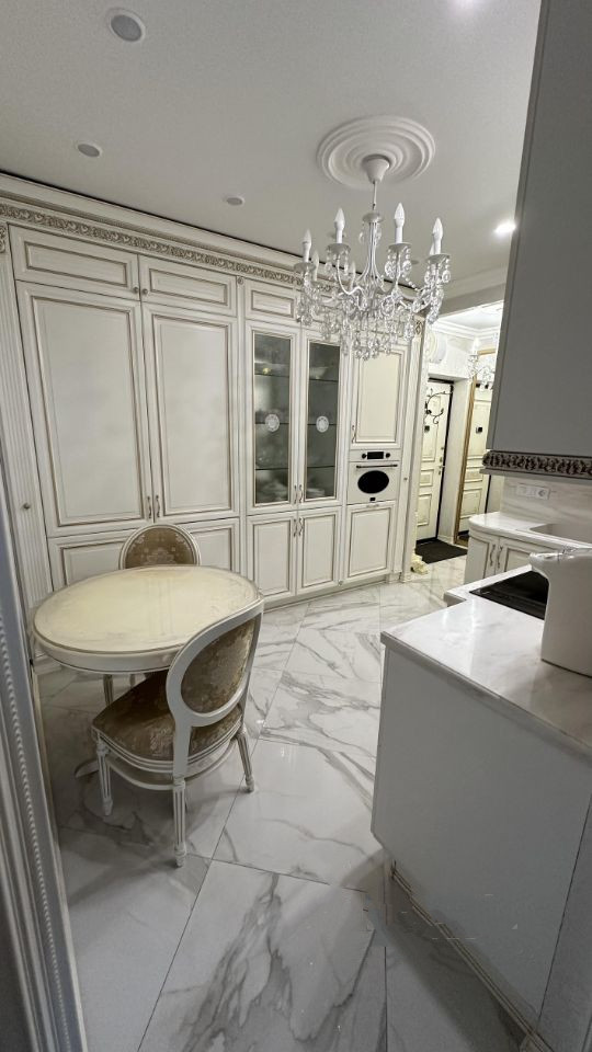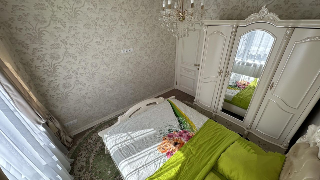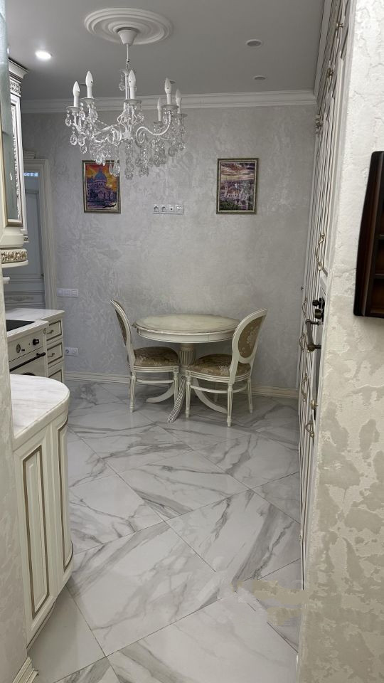 В квартире выполнен современный ремонт, материалы были подобраны с учетом пожеланий хозяев. Две большие спальни, гостиная. Большая кухня, дорогая мебель, квартира полностью укомплектована мебелью и техникой (Возможна продажа с мебелью и техникой).