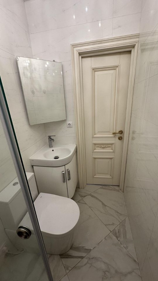 В квартире установлена сантехника. Ванна оснащена качественным сантехническим оборудованием, на потолке и стенах плитка из натурального камня. Уютная гардеробная комната.