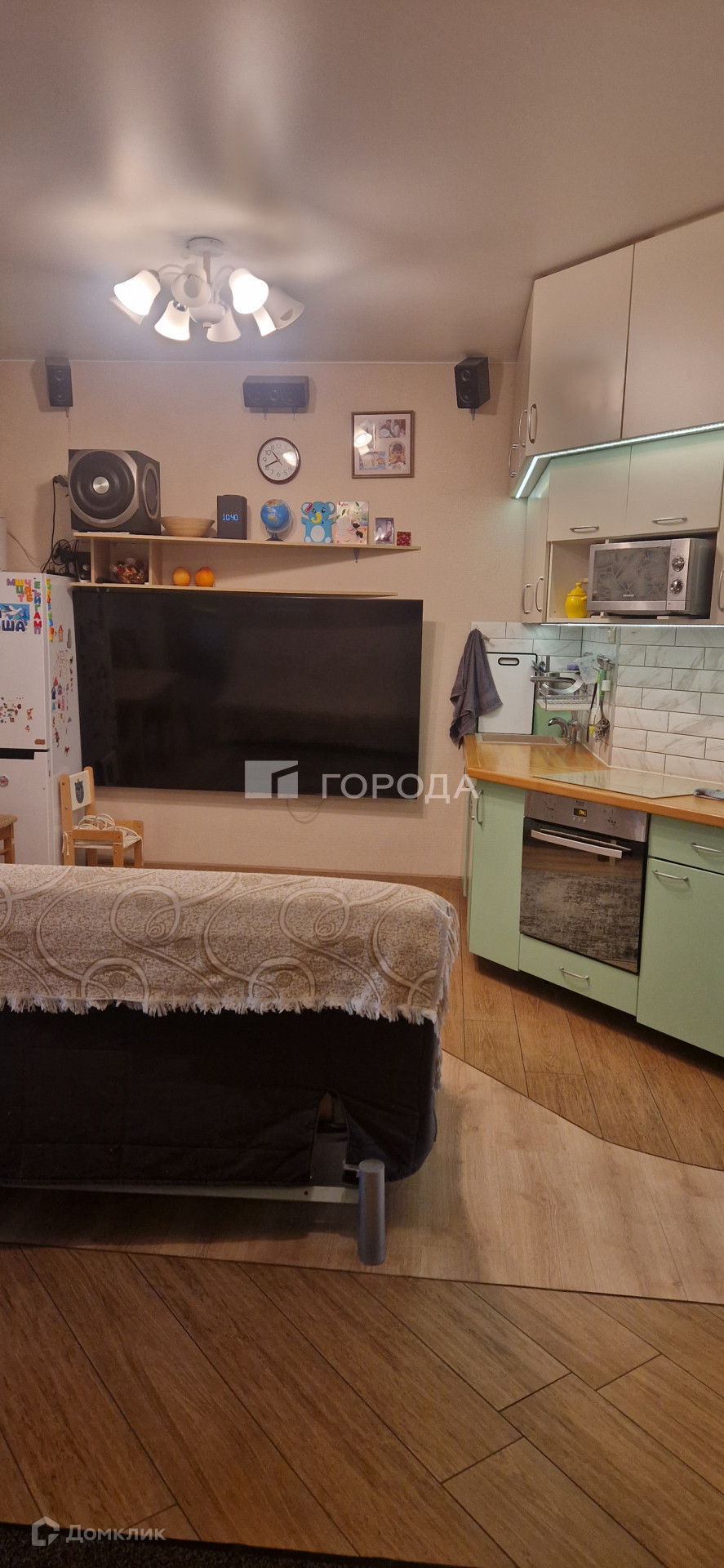 Шумоизоляция по всем канонам: не по стене, а отдельной конструкцией, плюс многослойный порог по всему потолку. Шкафов и мест хранения с запасом, практично спланированы и не мешают. В центре зал с кинотеатром, разведен качественный звук 5.1.