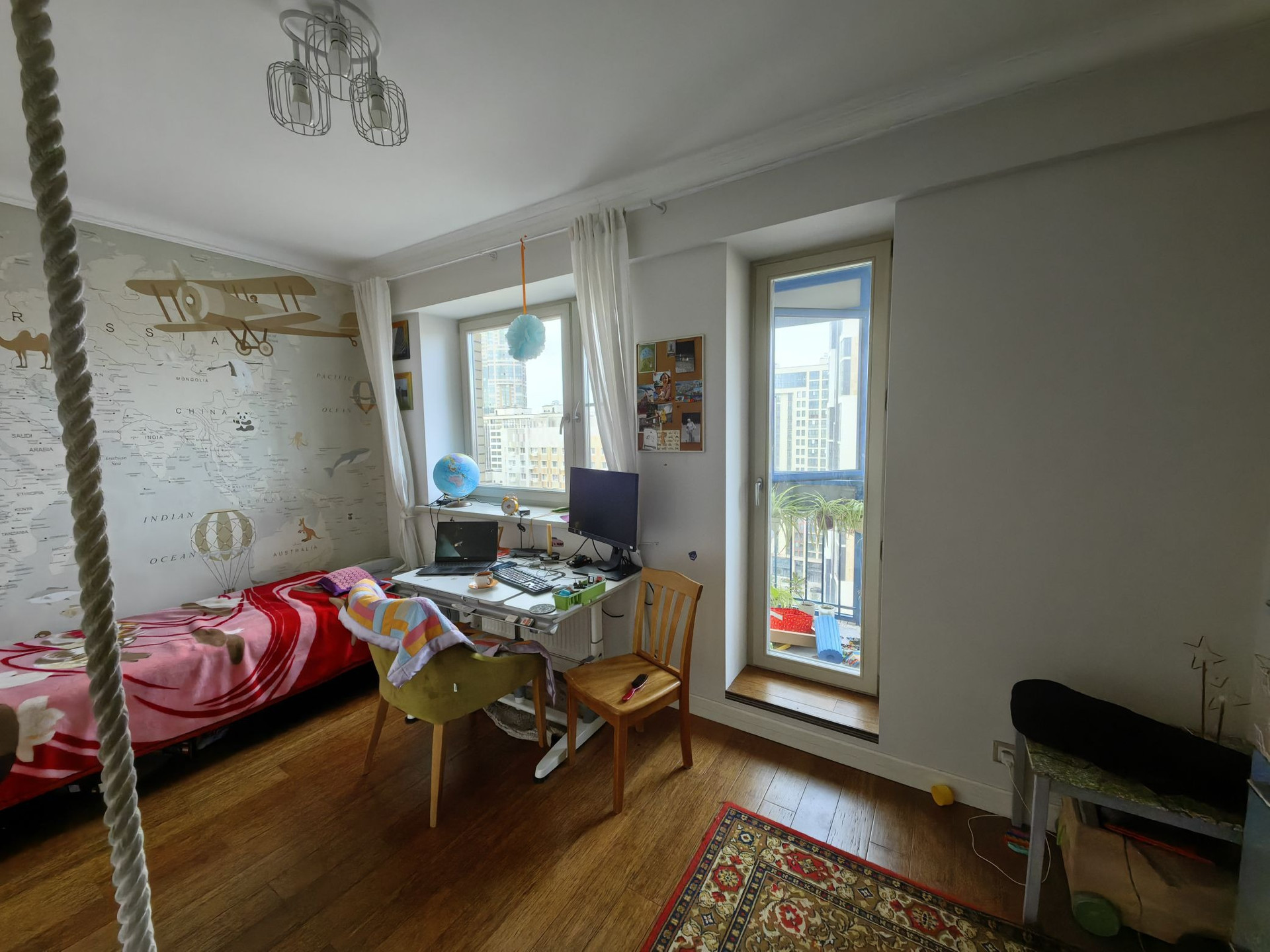 Две застекленные лоджии (французское остекление), 2 сан.узла, чугунная ванная (1 отдельный, второй совмещенный), полы бамбуковый массив.