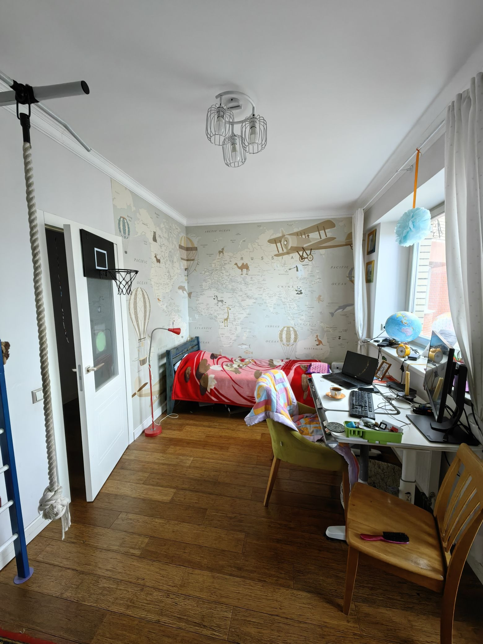 Есть отдельная гардеробная и зона для библиотеки.