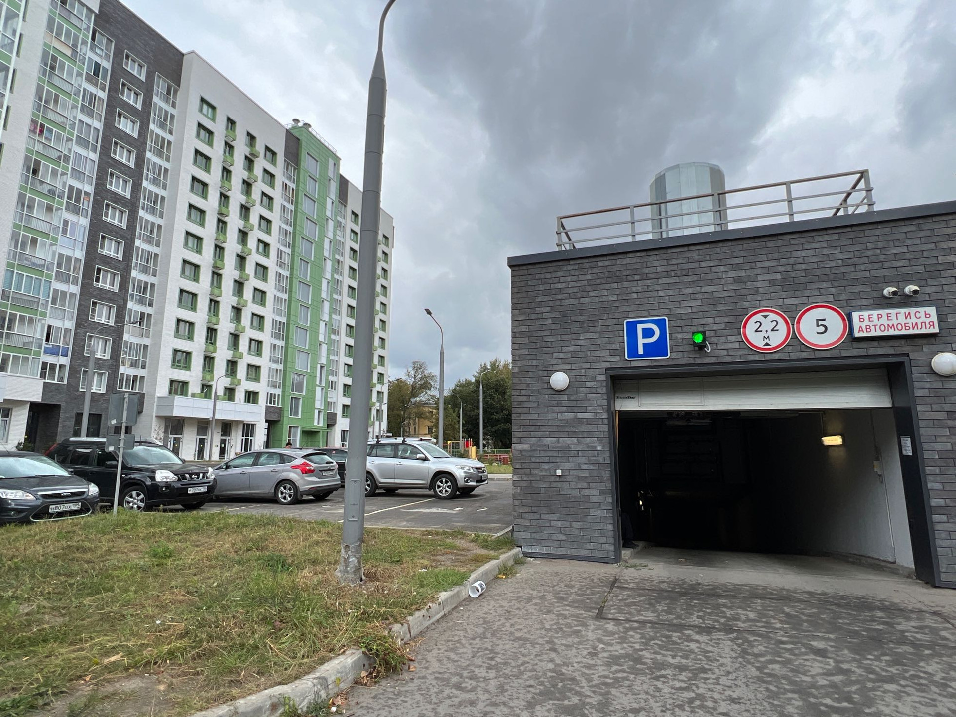 В доме расположен подземный паркинг, а также во дворе дома большая наземная парковка с обилием свободных мест.
