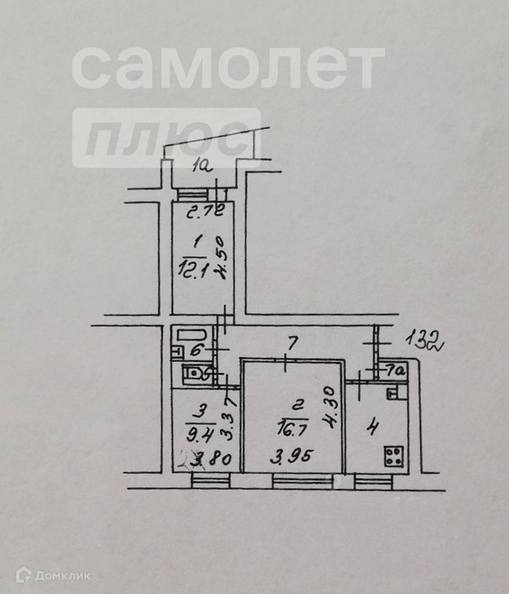 Жилая площадь 38.2 м2