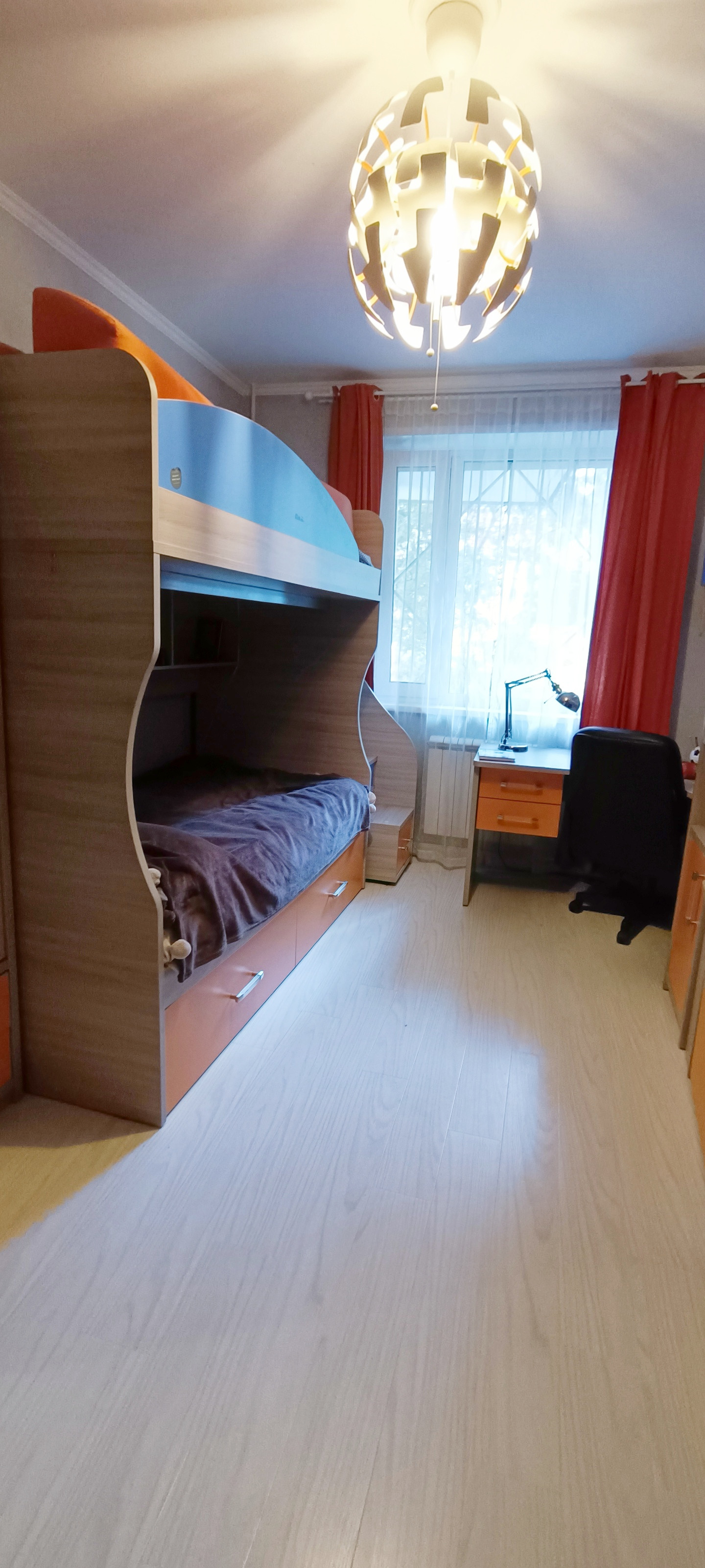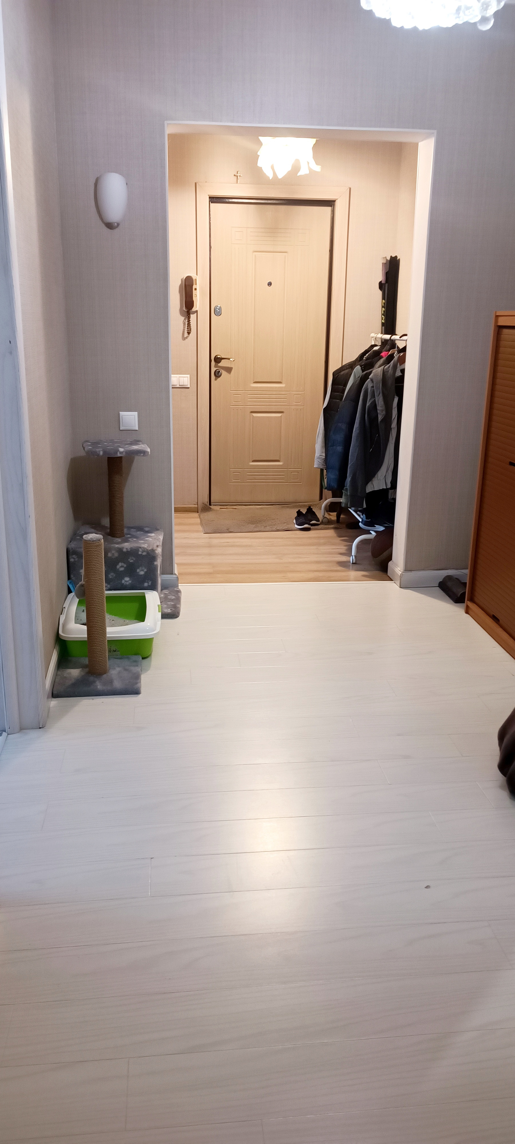 В квартире имеется большой просторный коридор. Отсутствуют смежные или проходные комнаты, так что активные игры в детской не будут мешать родителям отдыхать в спальне.