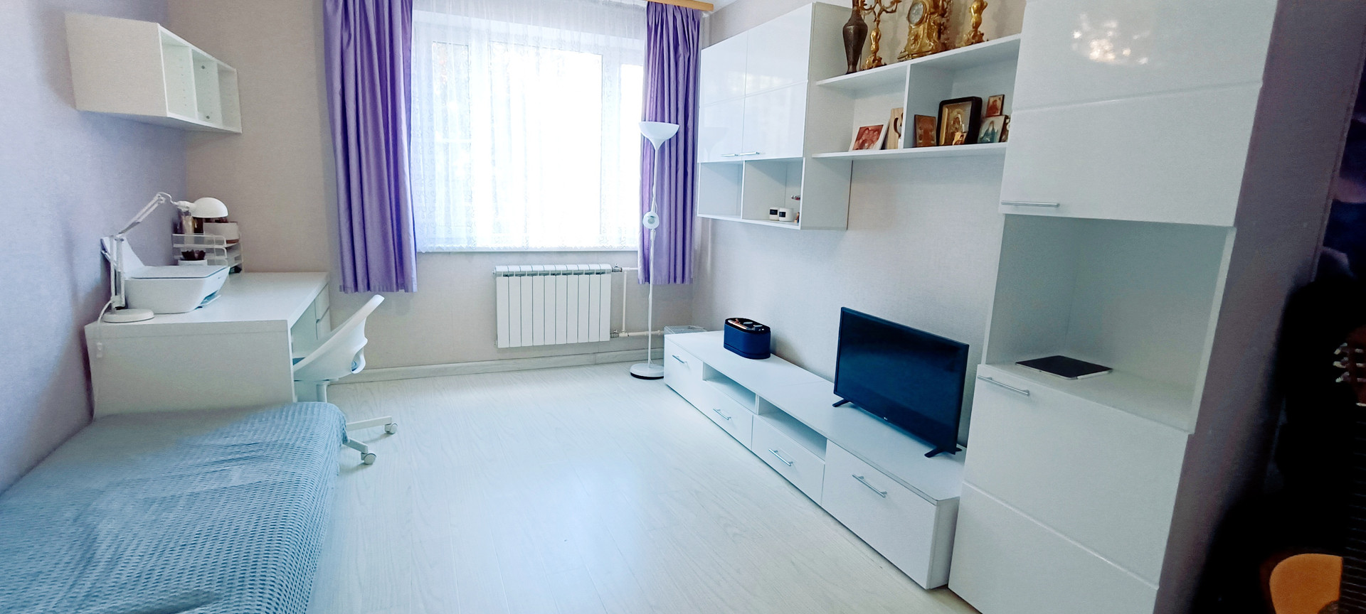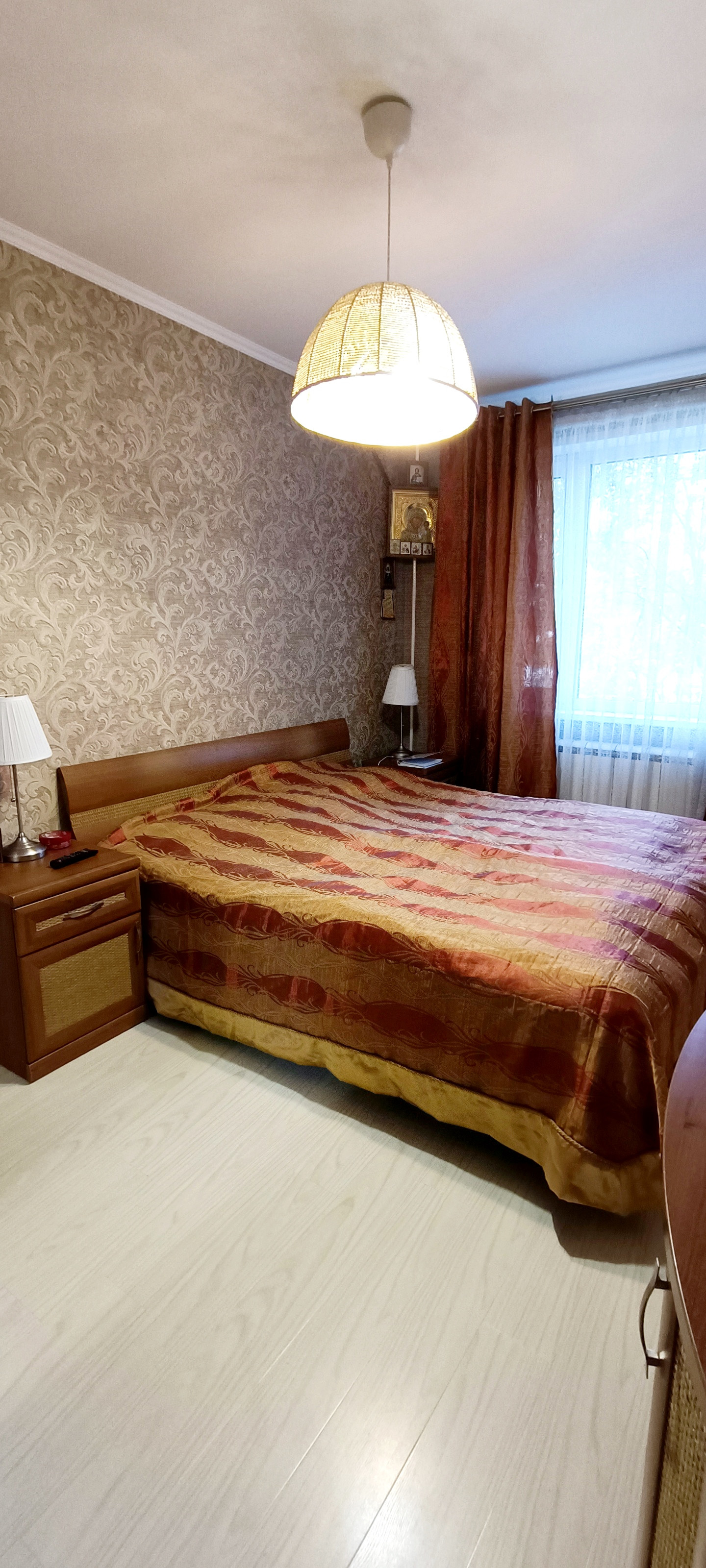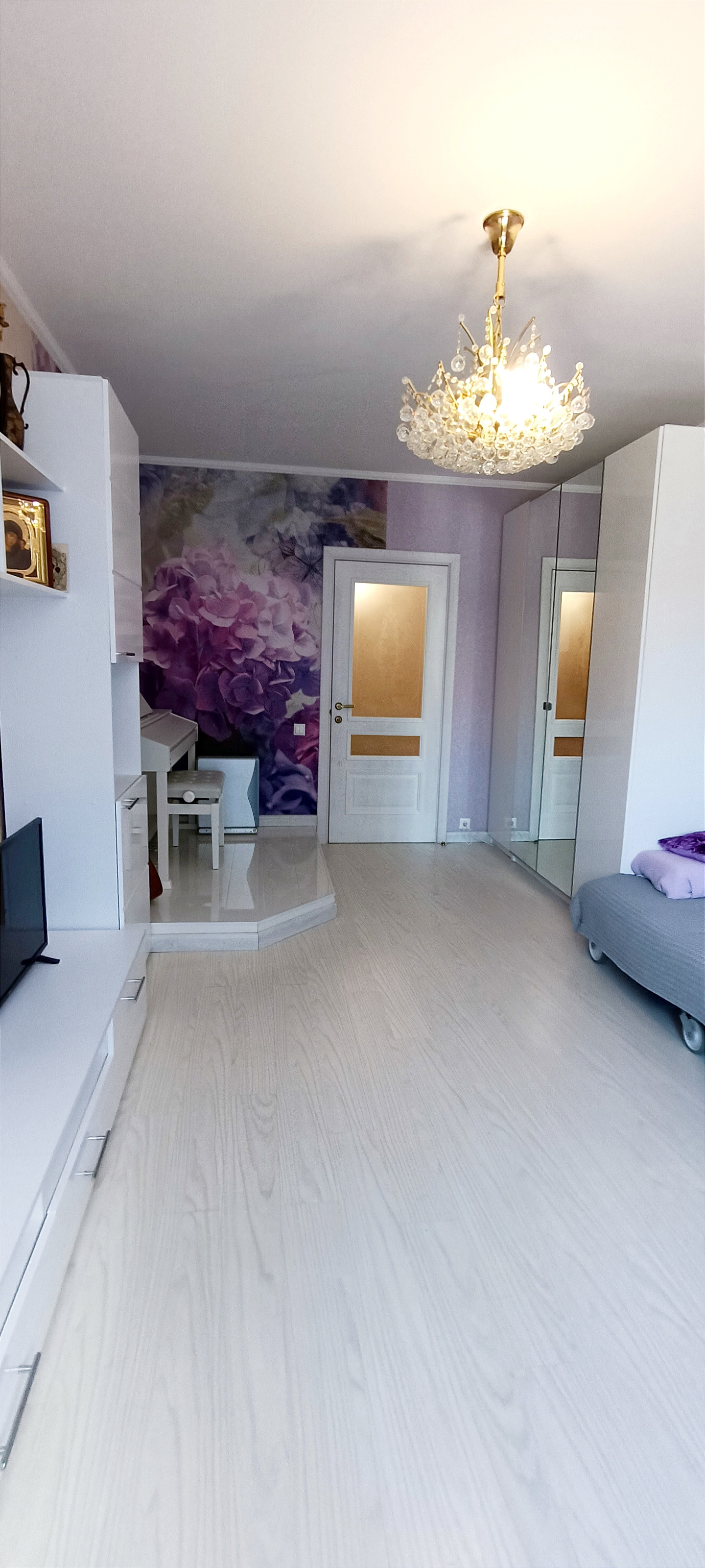 Квартира имеет планировку «распашонка», комнаты которой выходят одновременно на противоположные стороны дома. Наличие комнат с разным уровнем освещения очень комфортно для больших семей. Например, для любителей приглушенной яркости освещения, можно обустроить одну из спален на теневой стороне.