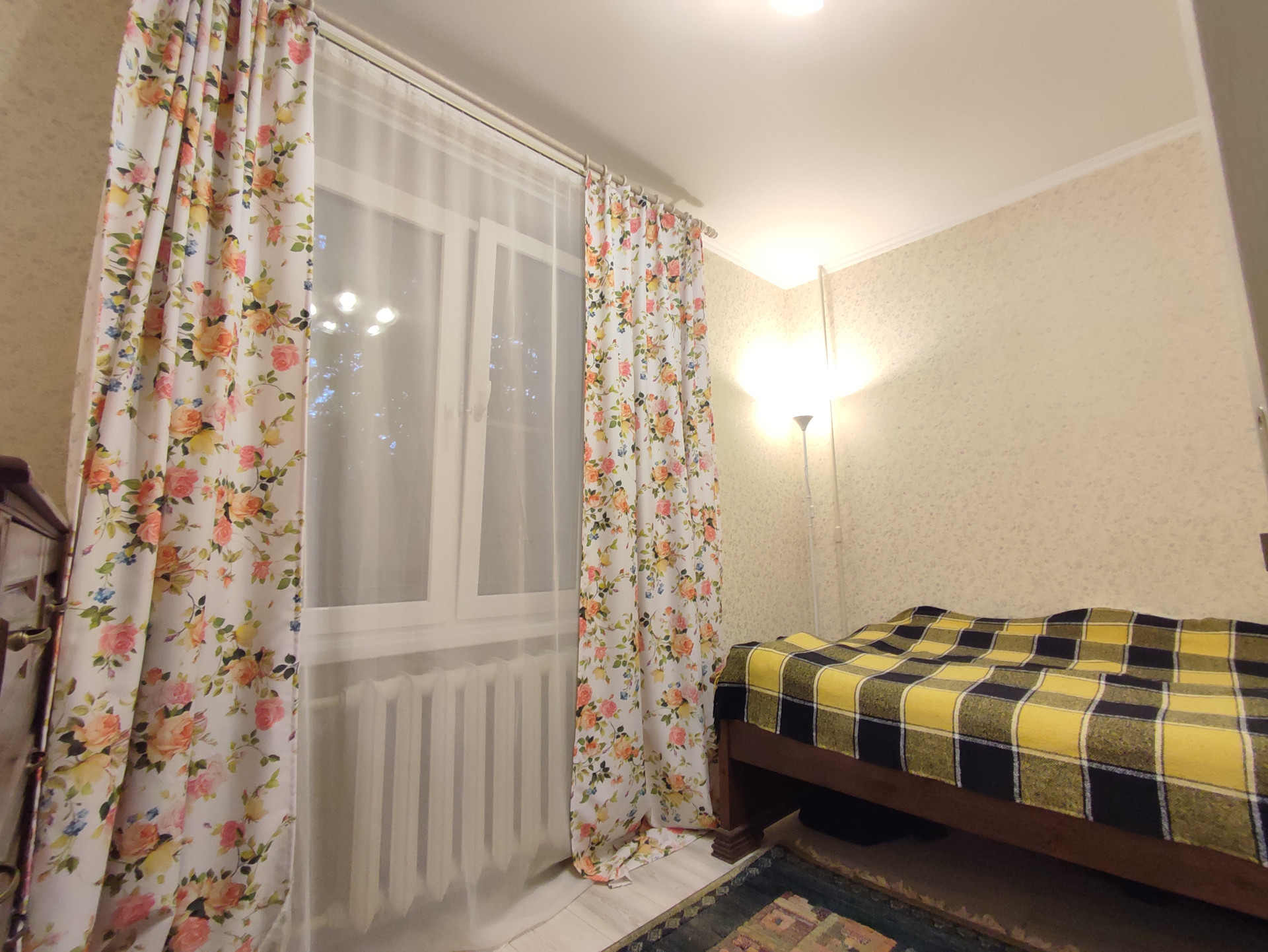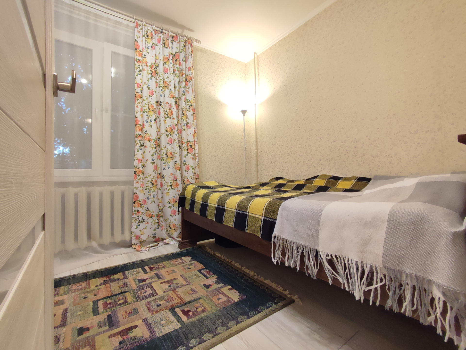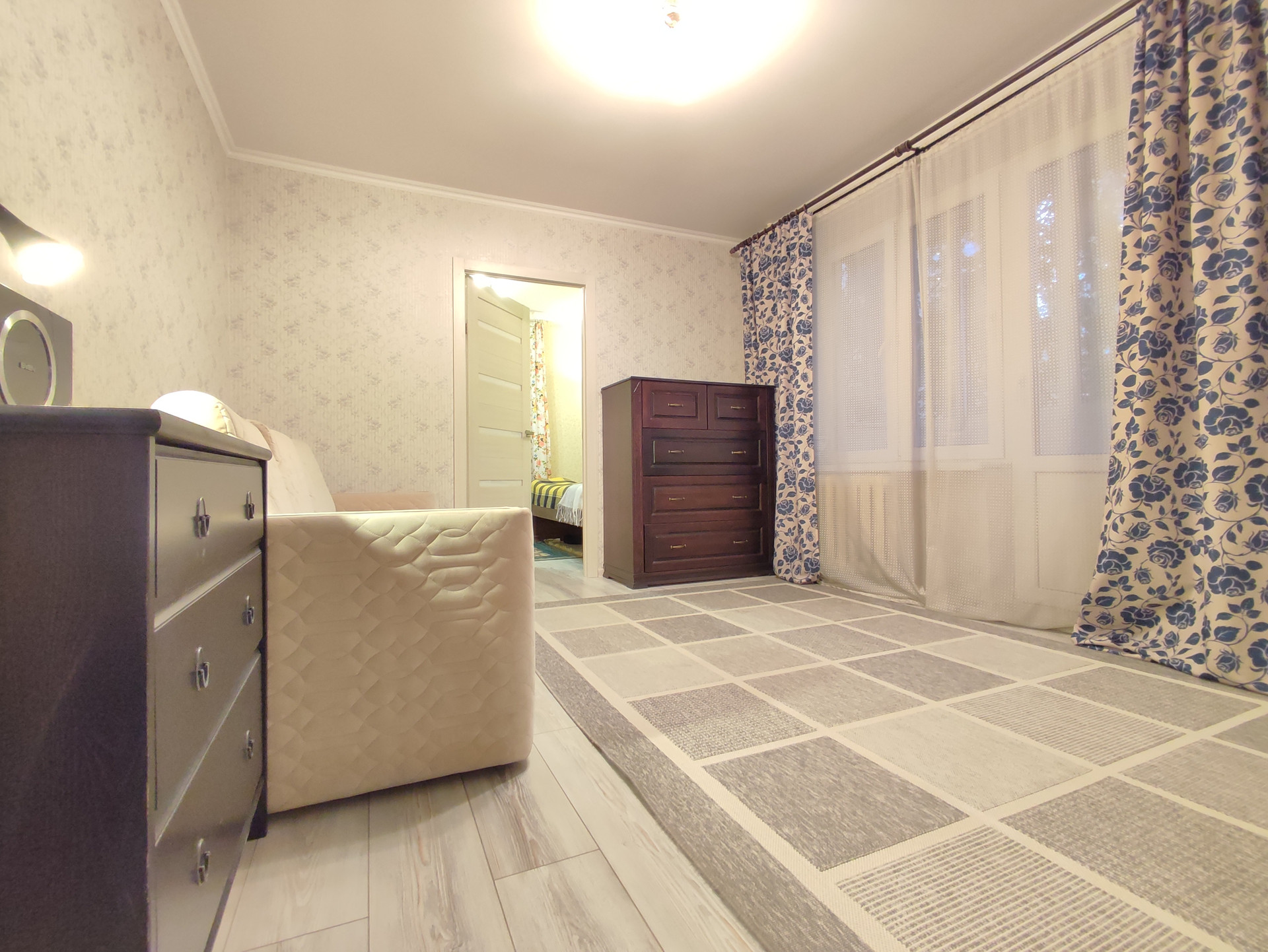 Квартира с функциональной планировкой, окна смотрят во двор. Две комнаты площадью 14,1-8,5 кв.м, большая комната проходная, имеется застекленный балкон. В квартире остается мебель и техника.
