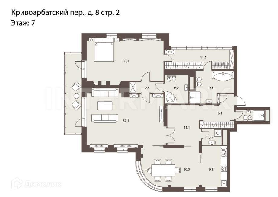 3-комнатная квартира, 148.6 м2, этаж 7 / 7, на продажу в Москве, Кривоарбатский переулок, 8с2
