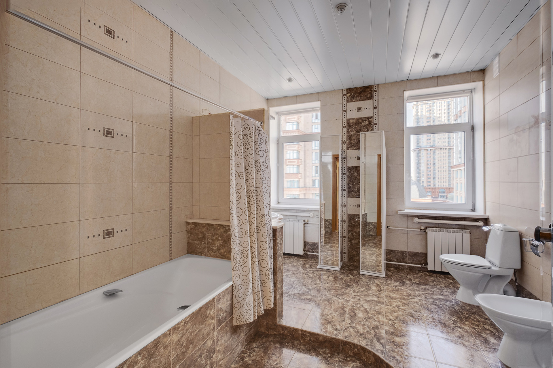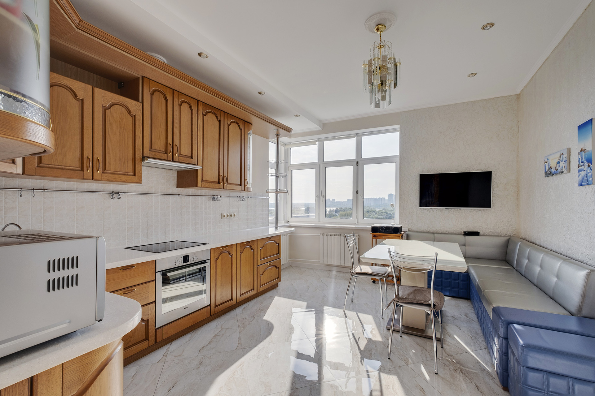 Квартира находится на 5 этаже, откуда открывается потрясающий вид на реку. Закаты, которые можно наблюдать из этой квартиры, особенно завораживают.