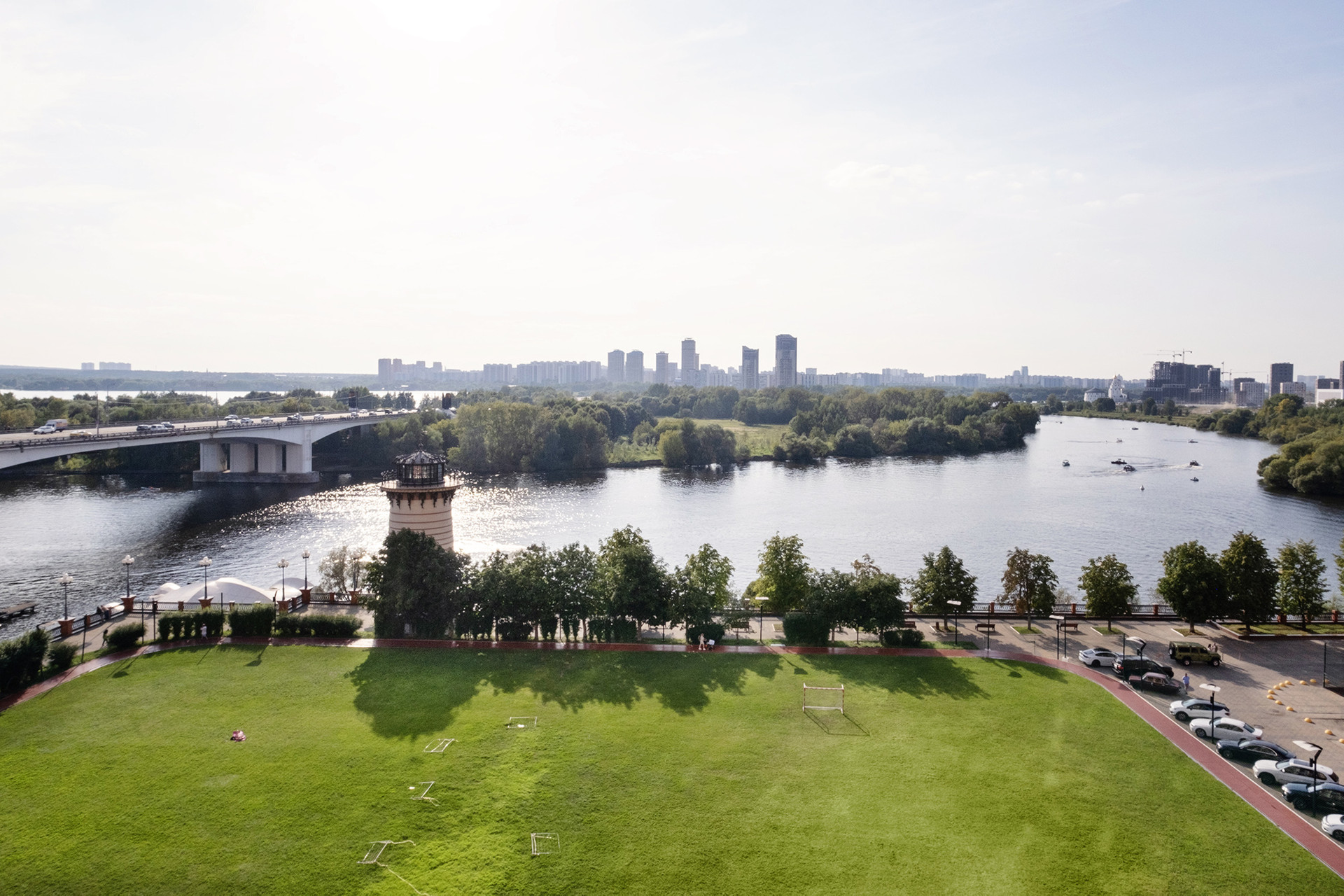 ЖК Алые Паруса расположен на территории более 15 гектаров, которая полностью огорожена и охраняется. На территории комплекса есть собственная благоустроенная набережная с каскадными фонтанами, альпийским садом и розарием. Также на территории есть профессиональное футбольное поле и беговые дорожки, яхт-клуб с причалом, крытые теннисные корты, медицинские центры, магазины, кафе и многое другое для счастливой семейной жизни. Комплекс не имеет аналогов в столице.