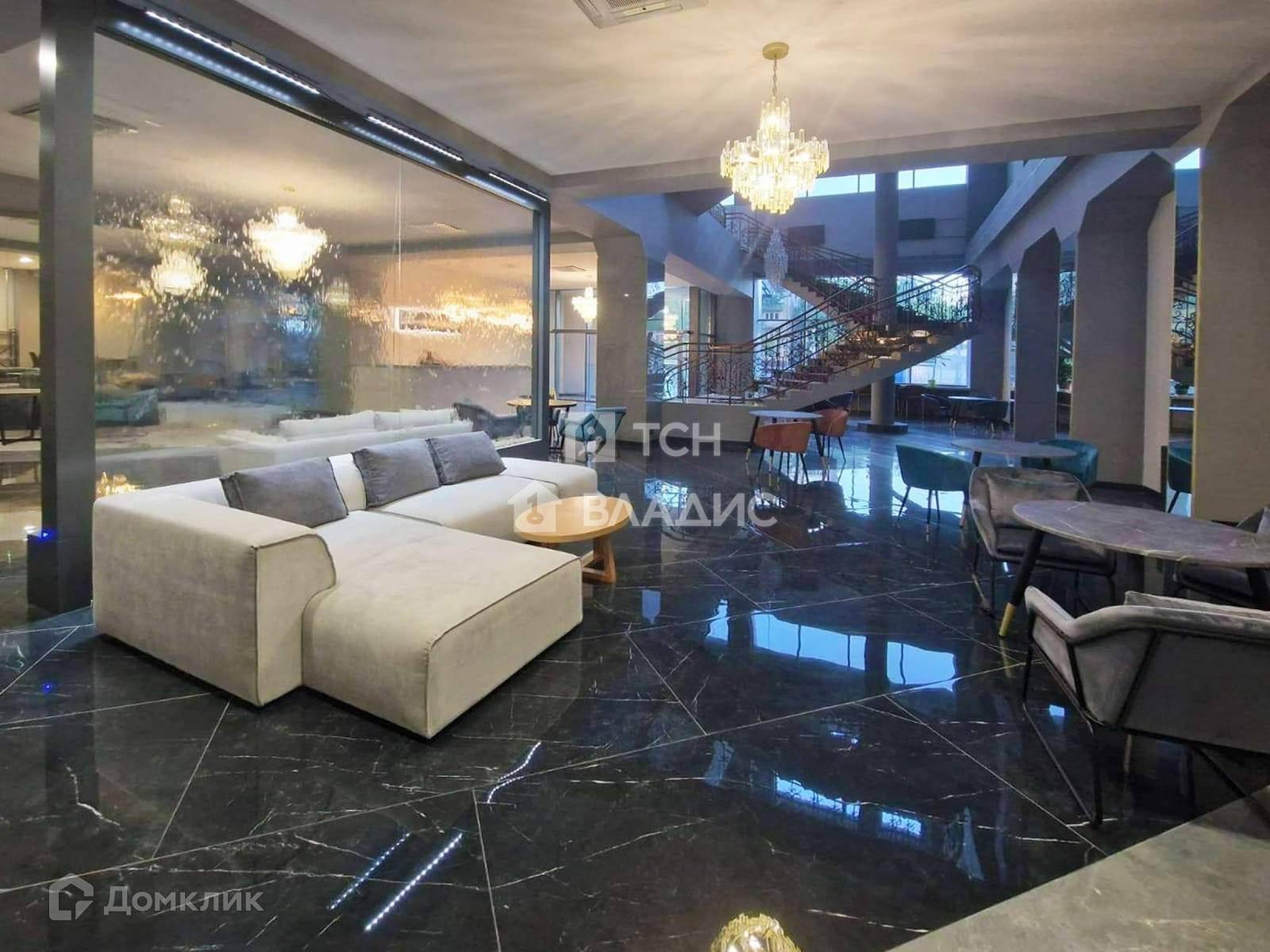 Большие окна позволяют наслаждаться живописными видами на город и окружающую природу.