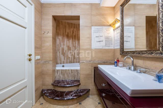 В квартире применялся только травертин из Италии ,декоры известной Итальянской фабрики Petra Antiqua, мрамор, включая общественые общеквартирные зоны на этаже. Никакой керамики и керамогранита.