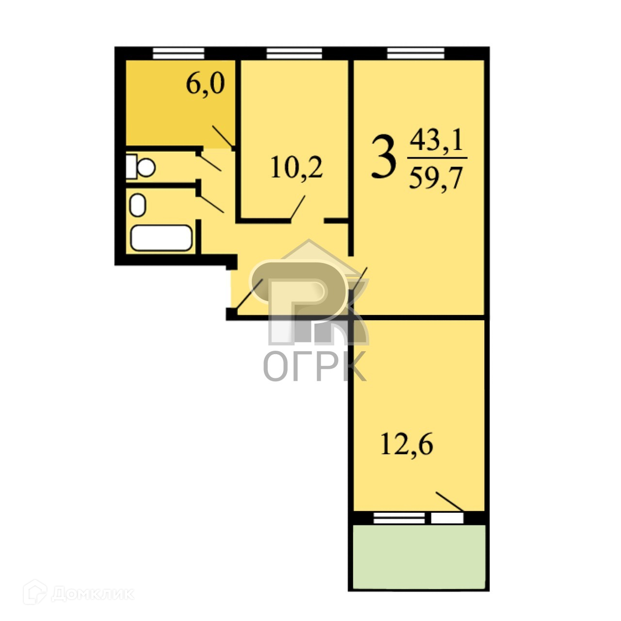 Общая площадь 58.2 м2
