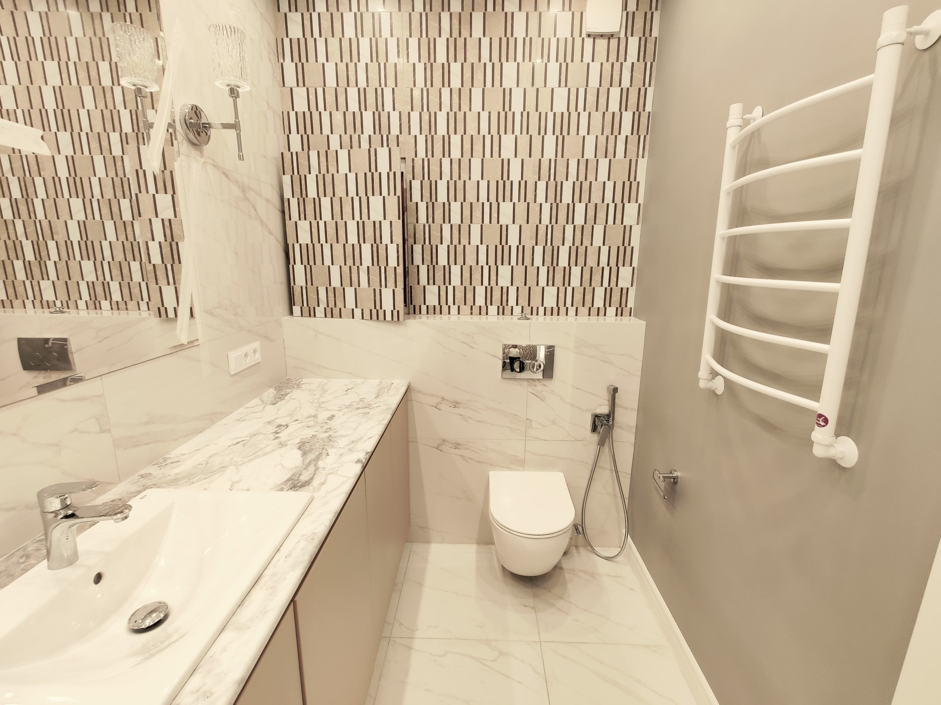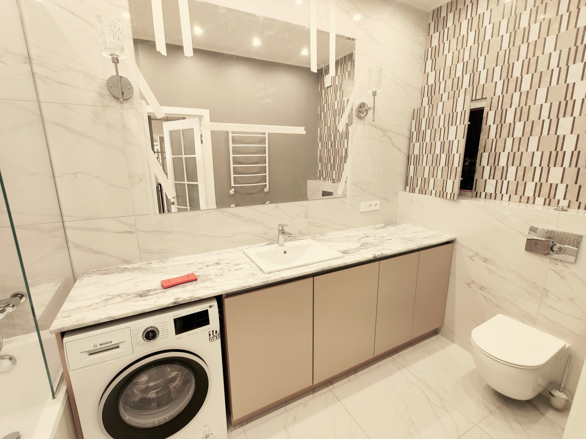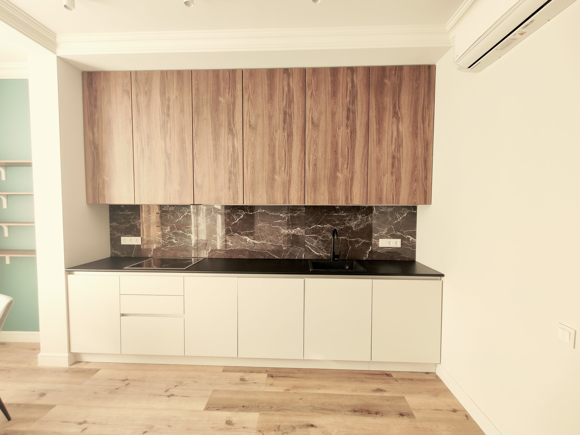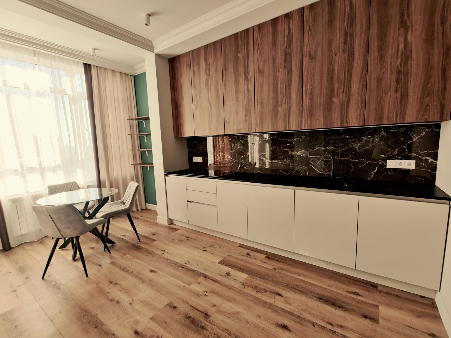 Встроенная кухня с бытовой техникой, квартира полностью меблирована и готова к проживанию.