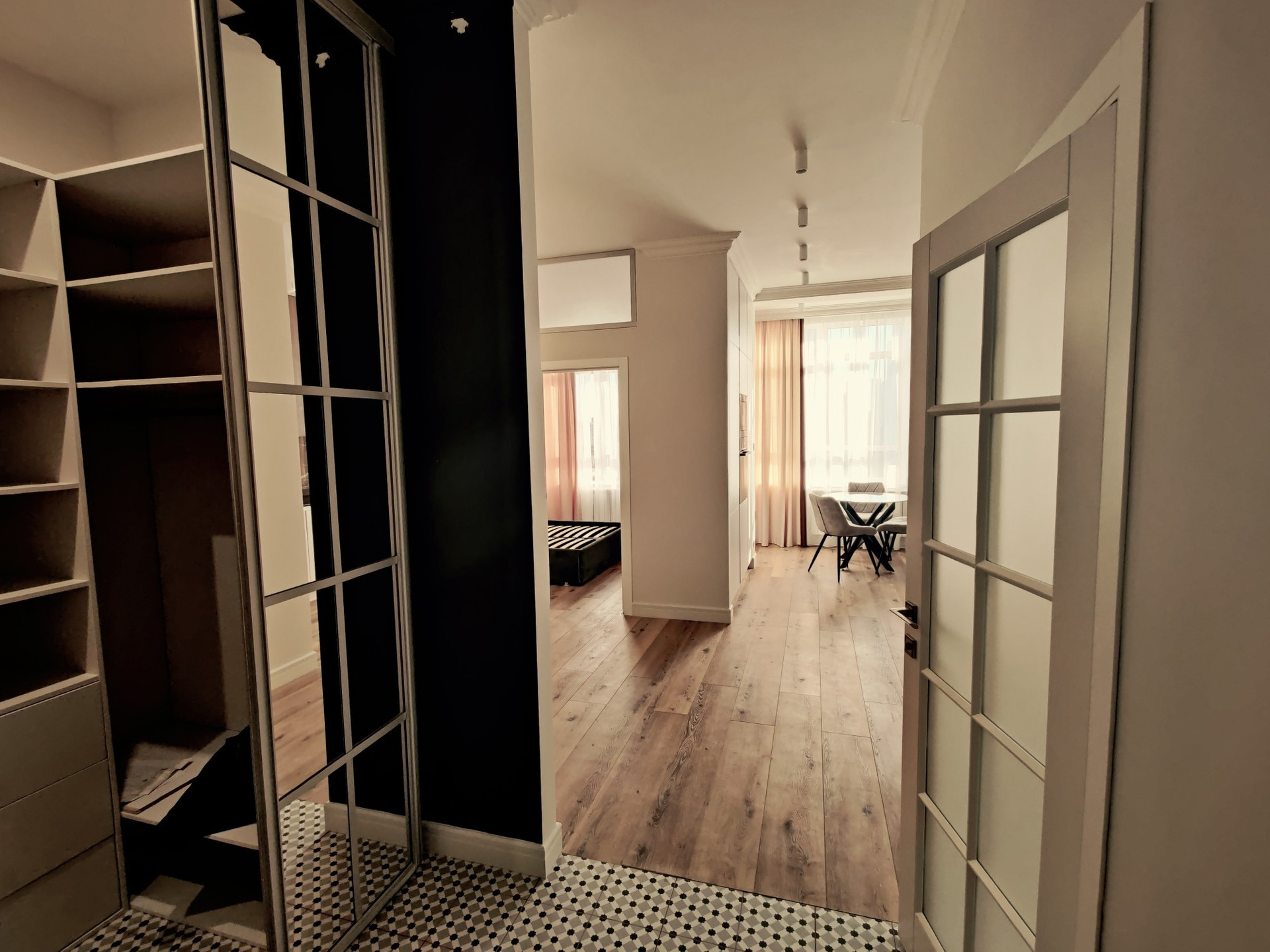 Квартира с потрясающим панорамным видом на Сити и дизайнерским ремонтом! Формат Евродвушка максимально эргономично спланирован на такой площади.
