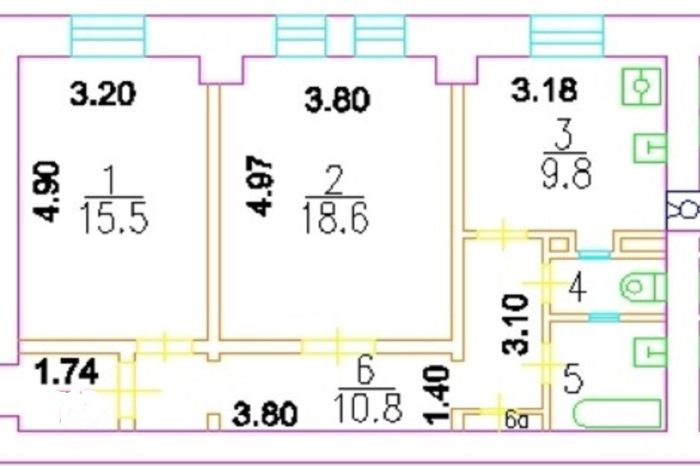 Общая площадь 60.3 м2