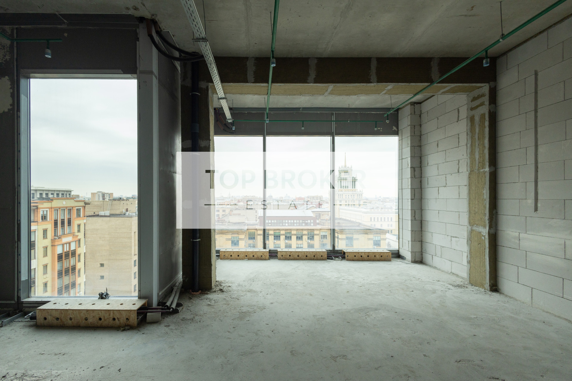 Возможная планировка: 3 комнаты, 2 спальни и 2 санузла. Из окон апартамента открывается шикарный панорамный вид на город. Высота потолков: 3-3,2 метра.