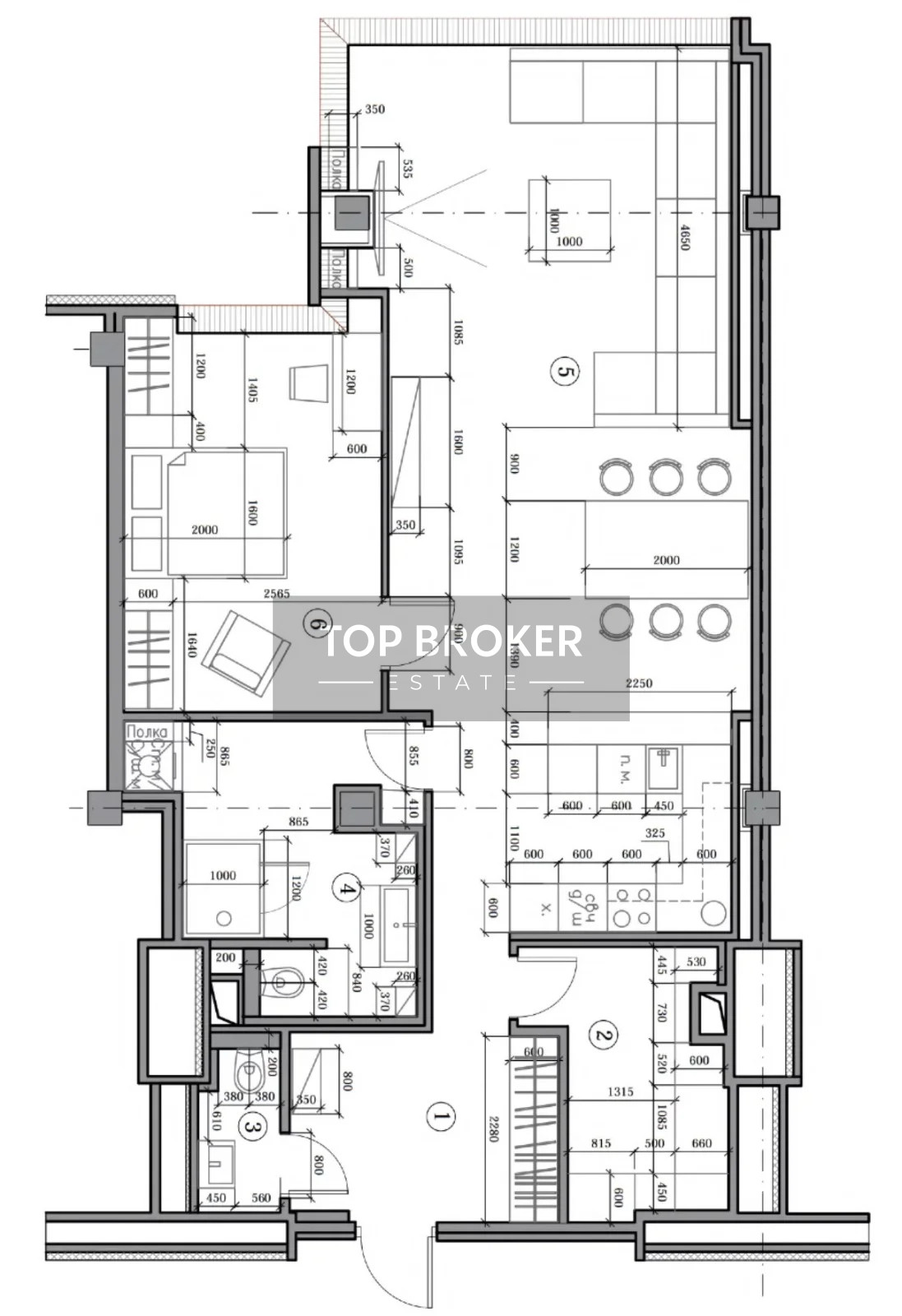 Площадь кухни 6 м2