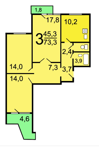 Общая площадь 73.3 м2