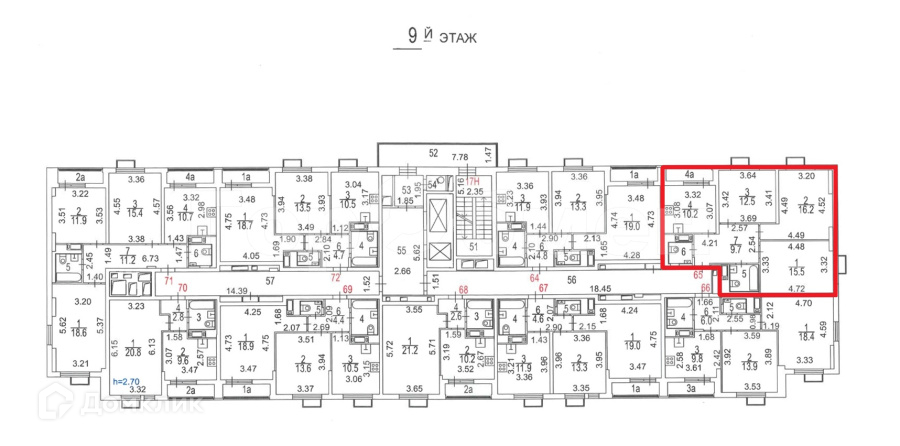 Высота потолков 2.7 м