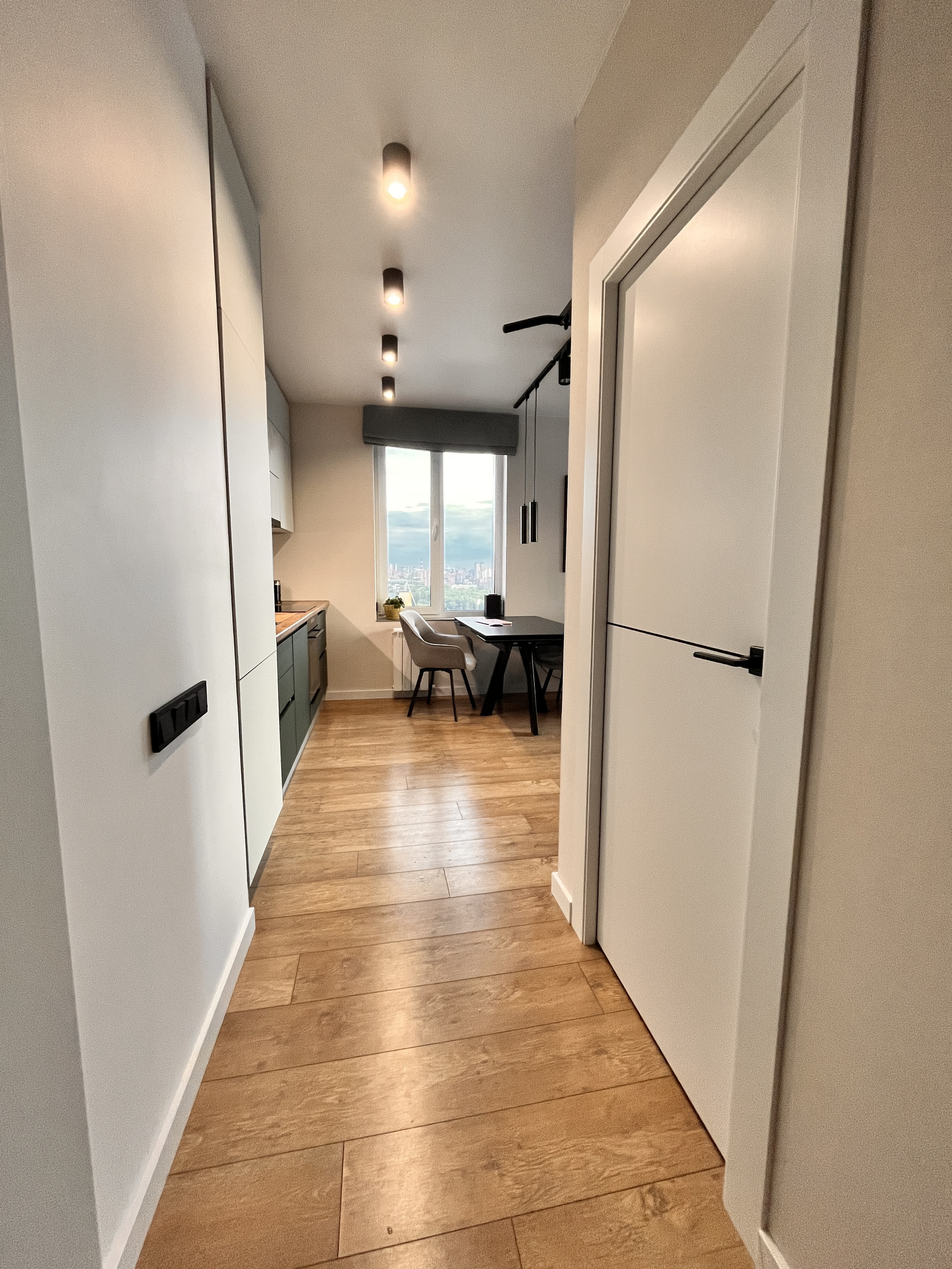 Для удобства управления светом сделаны проходные выключатели в коридоре, кухне и спальне.