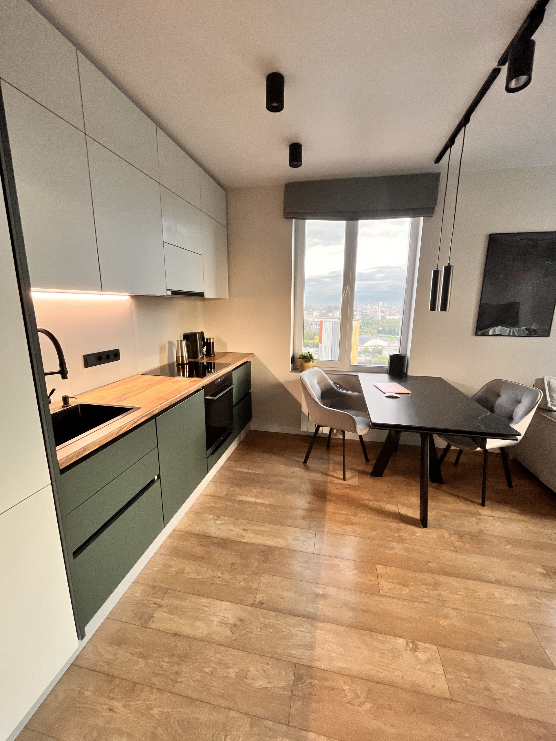 Квартира в ЖК "Преображение" на 25 этаже с потрясающим видом на юг-запад-север (фото из всех окон). Большая светлая кухня-гостиная с тремя окнами, с видом на две стороны, и спальня. Туалет и ванная совмещенные, с окном. Дом сдан в эксплуатацию в конце 2021 года.
