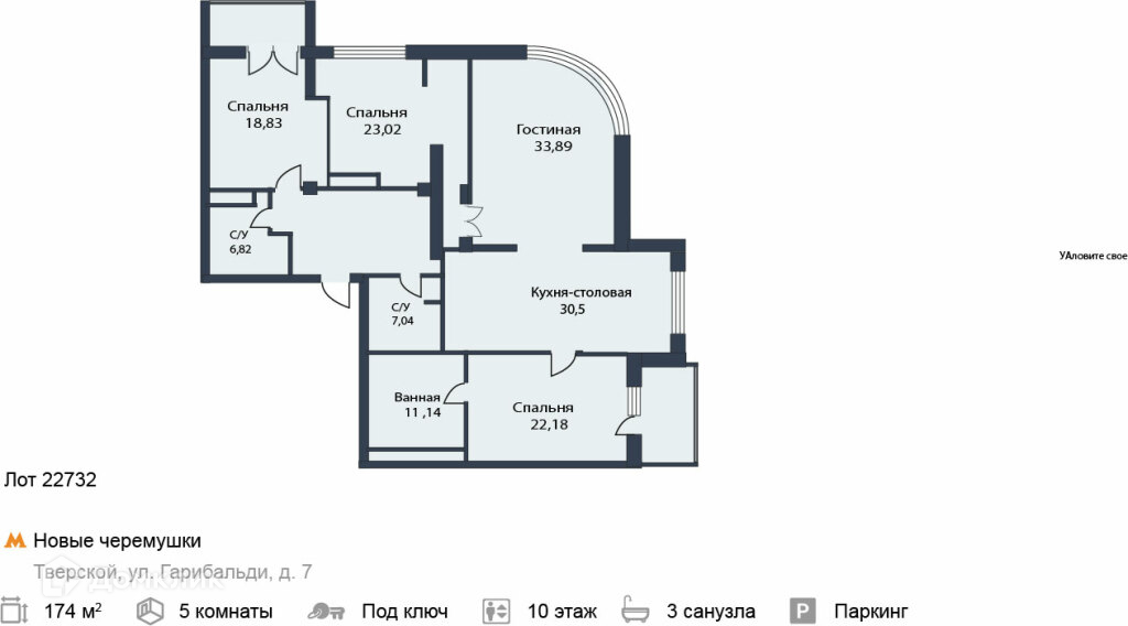 5-комнатная квартира, 174.7 м2, этаж 10 / 13, на продажу в Москве, улица Гарибальди, 7
