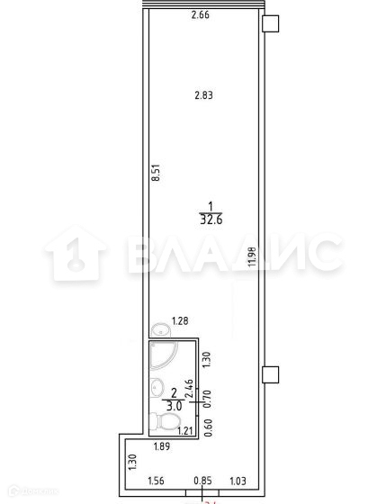 Общая площадь 35.6 м2