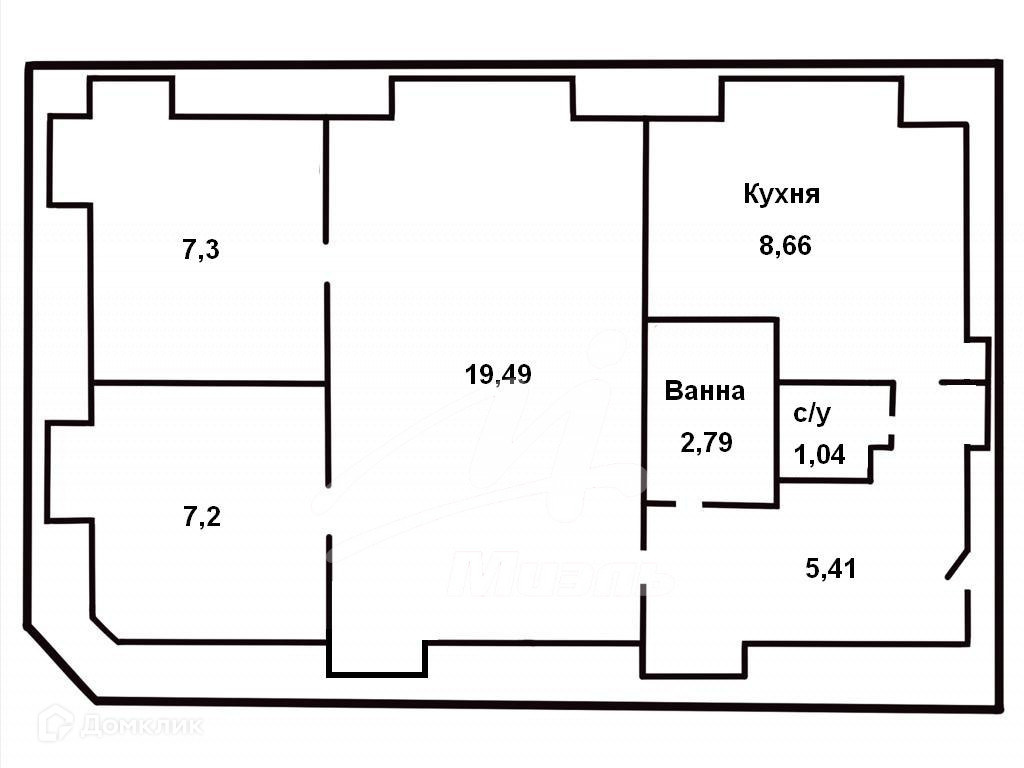 Общая площадь 52.3 м2