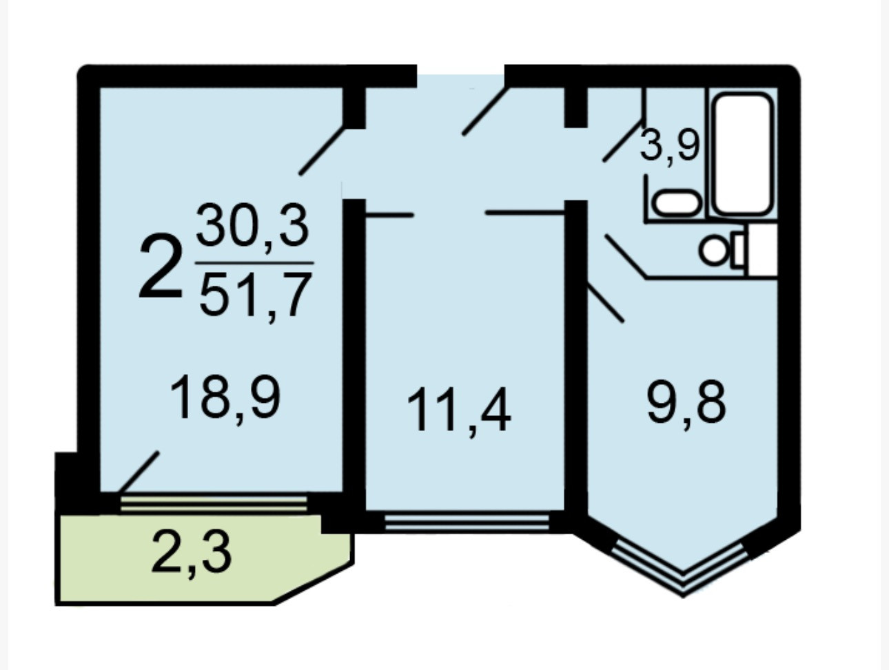 Общая площадь 51.2 м2