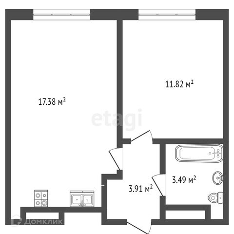 Общая площадь 37.3 м2