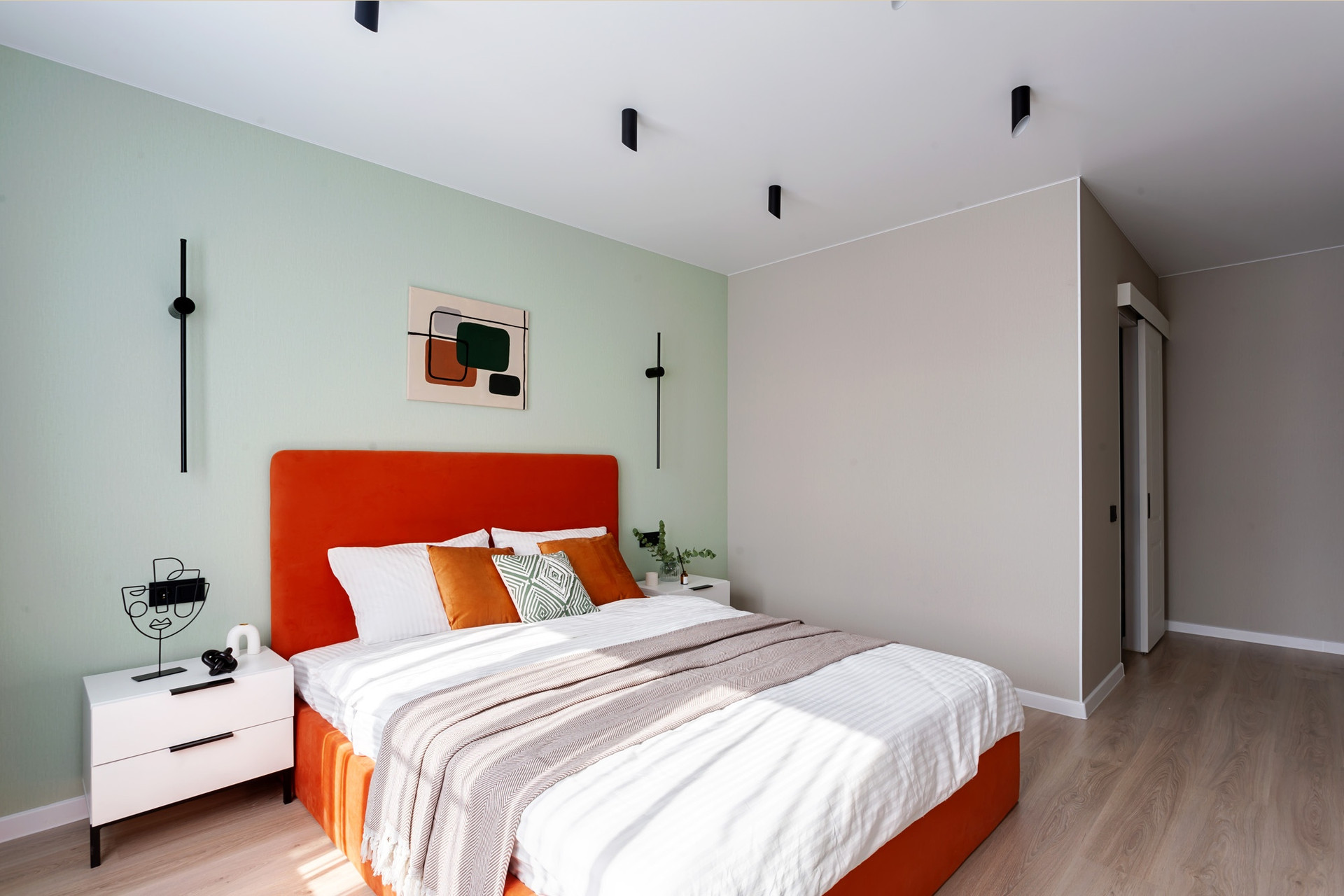 Большая комната с просторной продуманной гардеробной, сделанной под заказ. Маленькая комната оставлена для реализации идей нового собственника (можно организовать рабочее пространство или детскую).