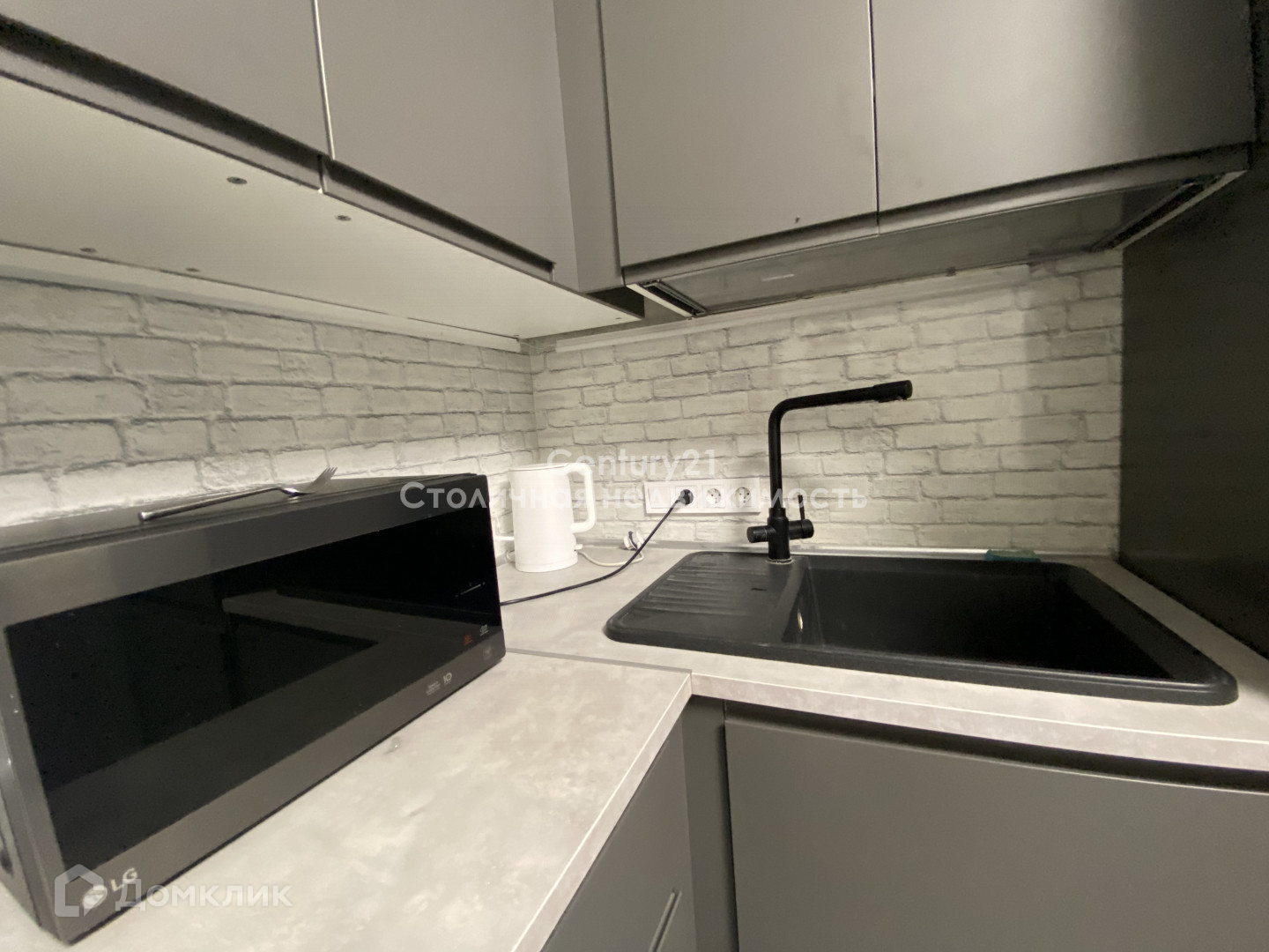 Духовой шкаф, варочная панель, вытяжка, холодильник, микроволновая печь. Вся техника новая, высочайшего качества. В столешницу в зоне кухни встроена каменная мойка.