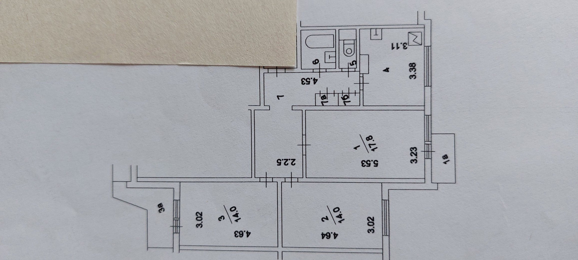 Жилая площадь 45.8 м2
