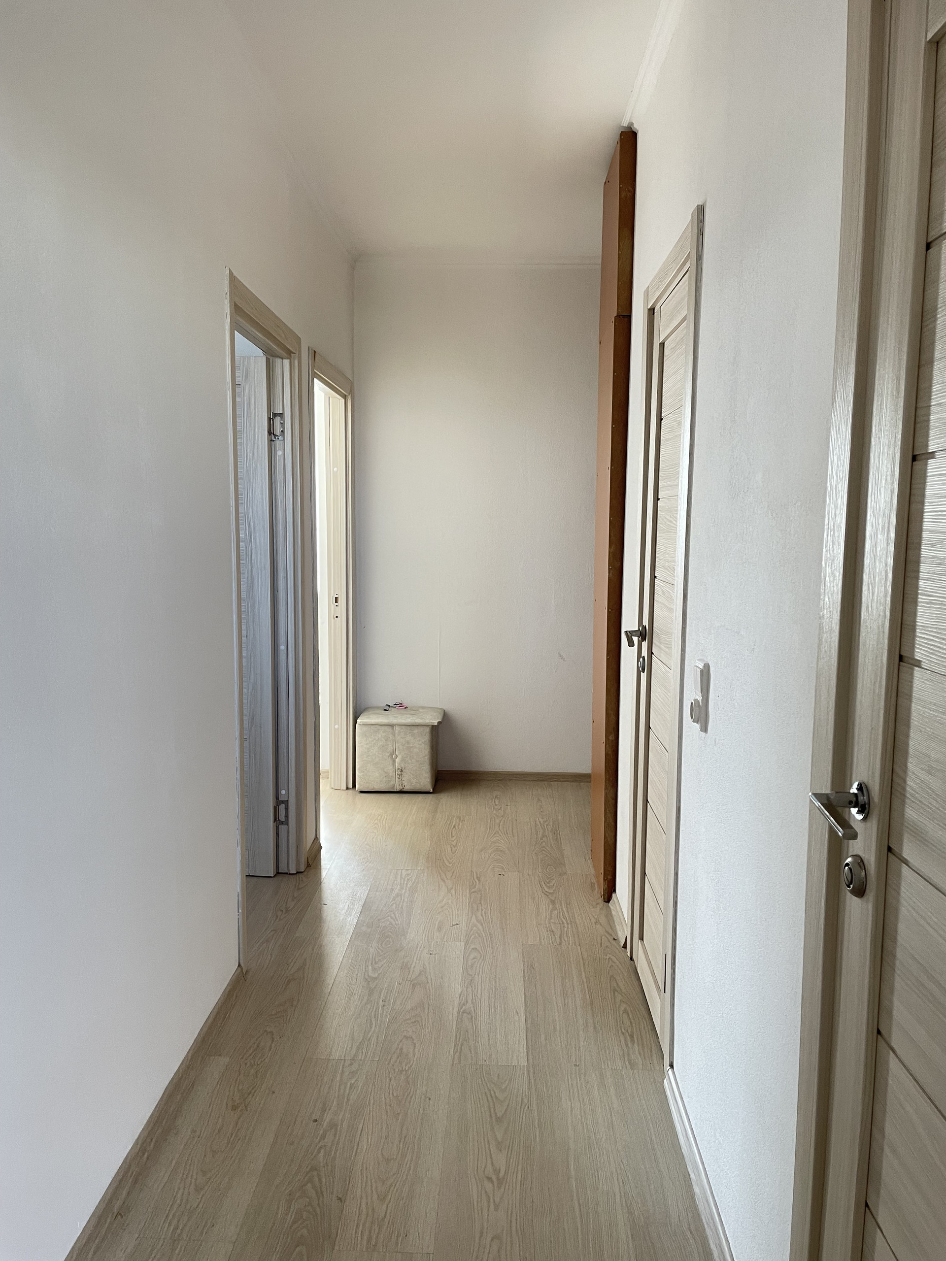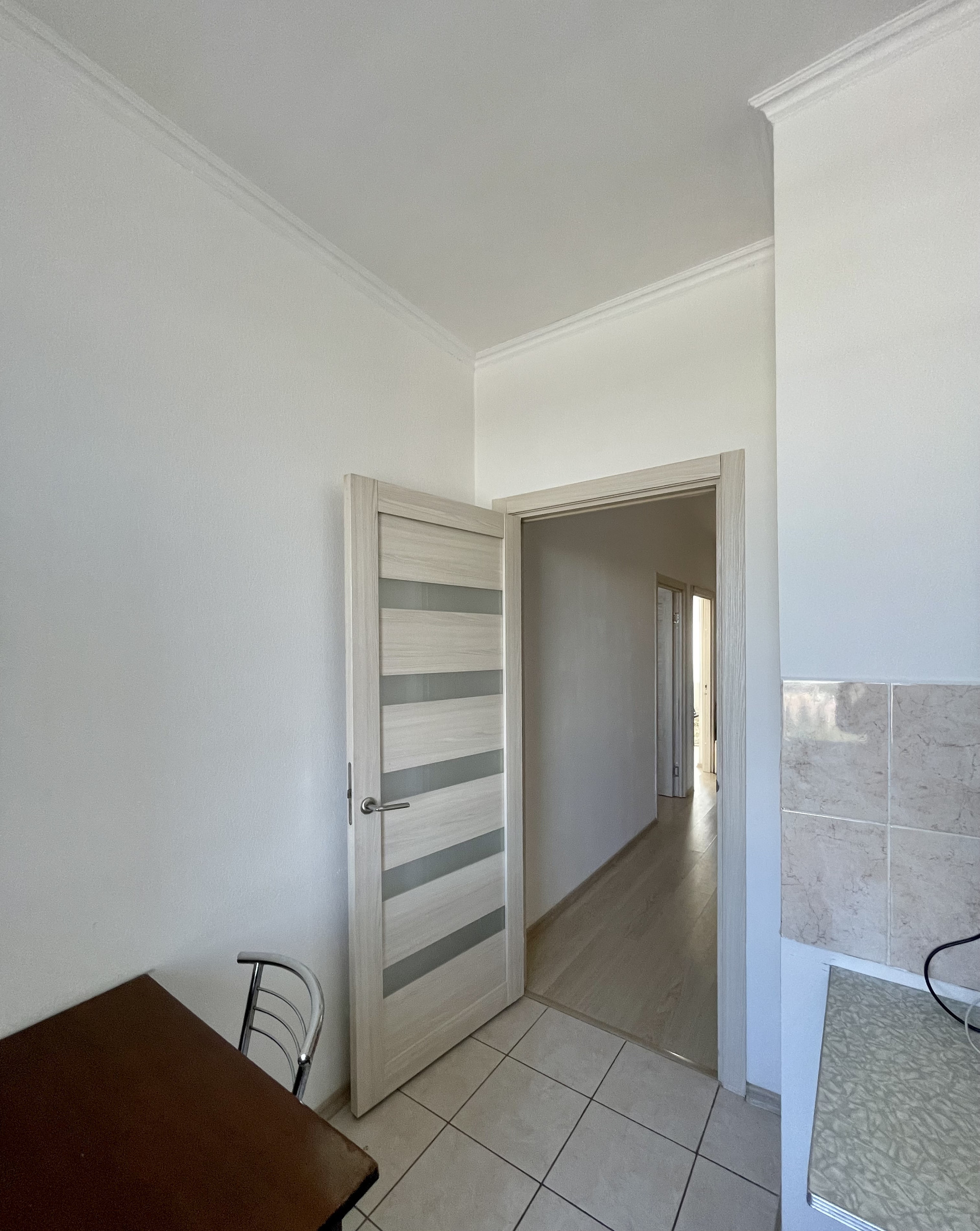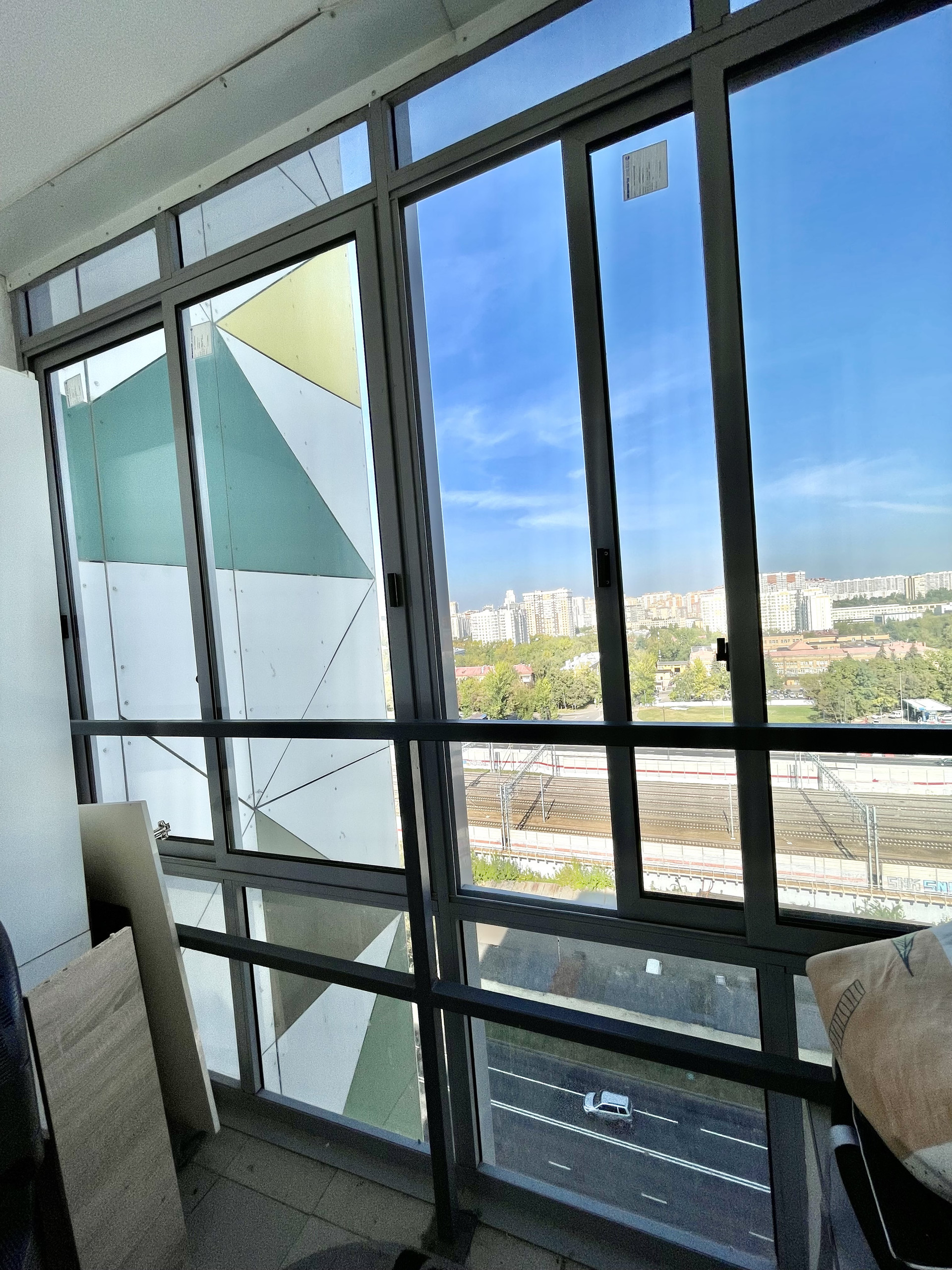 Планировка – распашонка, окна выходят на разные стороны, потолки 2,8 м, панорамное остекление лоджии.