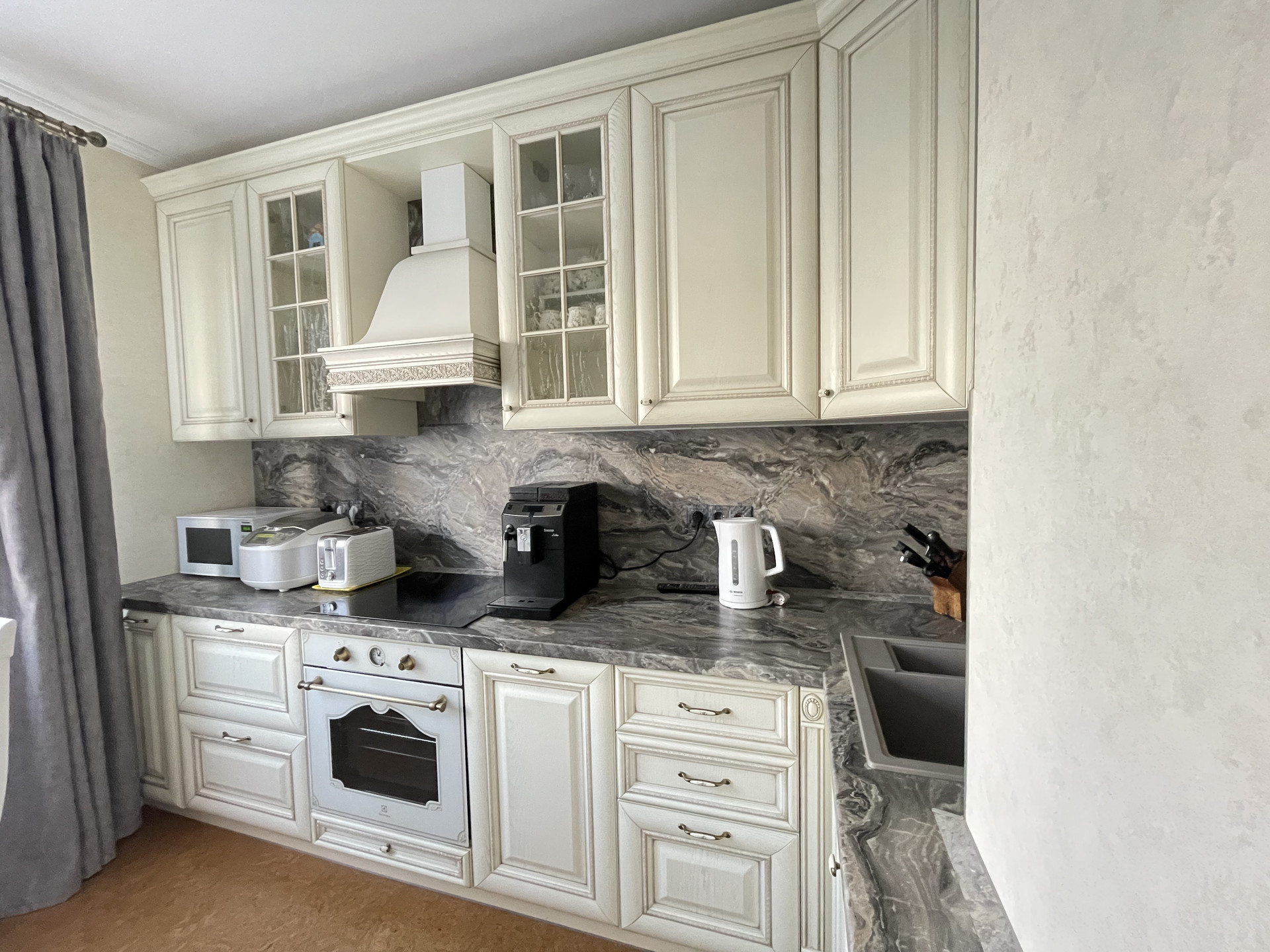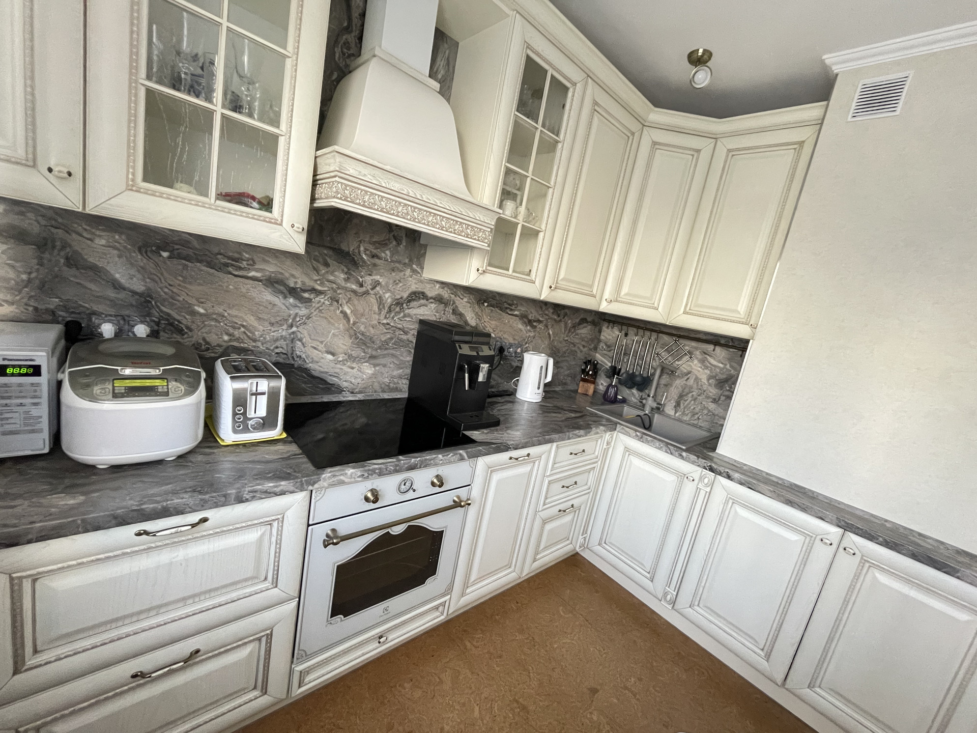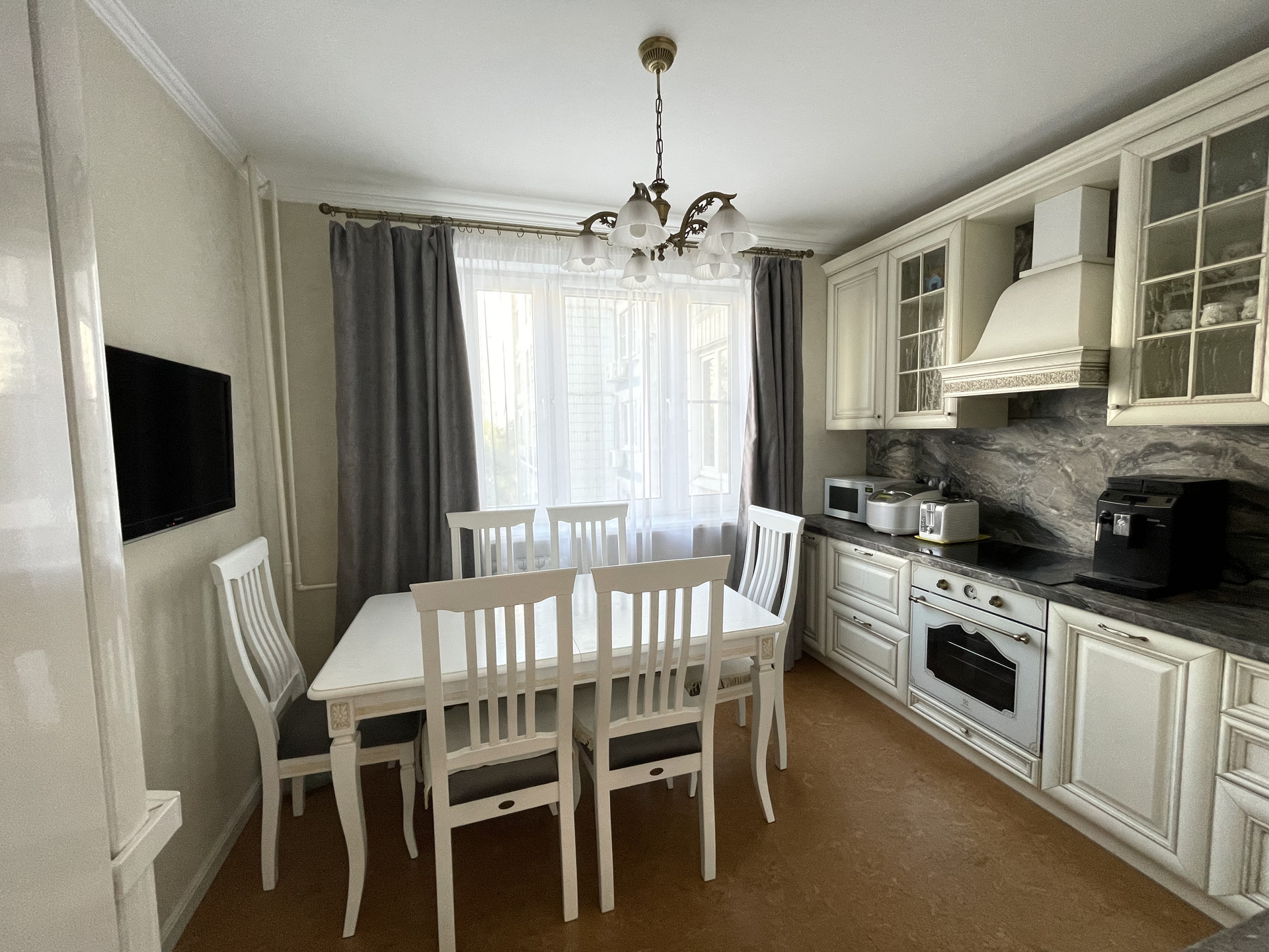 Квартира продается со встроенной кухней (массив дерева Италия), со всей бытовой техникой. Так же остается шкаф в коридоре.