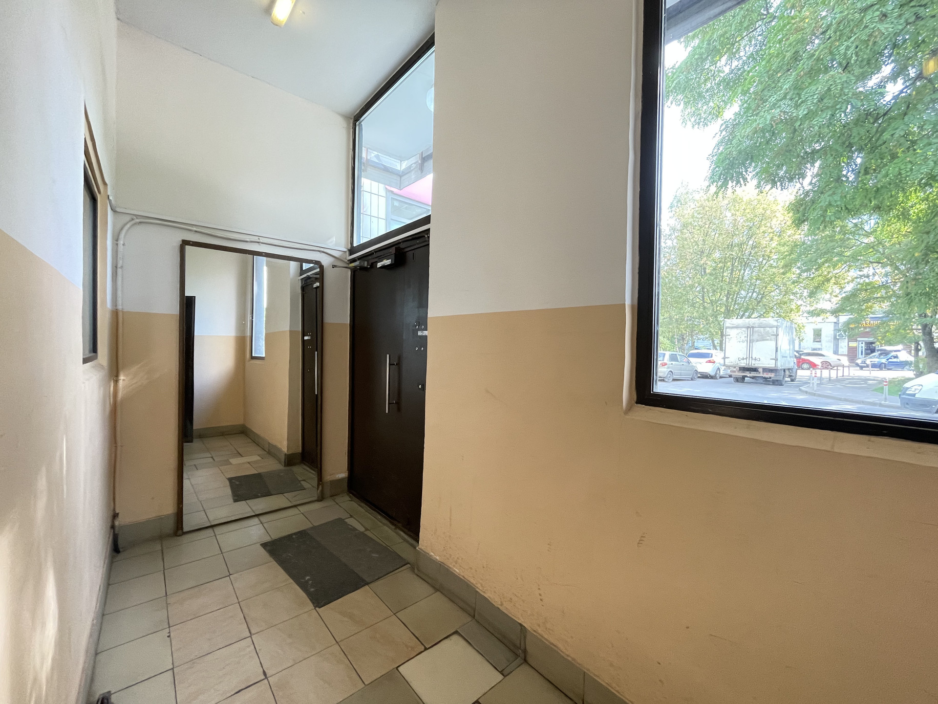 Закрытый тамбур на четыре квартиры, соседи все приличные, тихие. Чистый подъезд. Большой зеленый двор, с детскими и спортивными площадками.