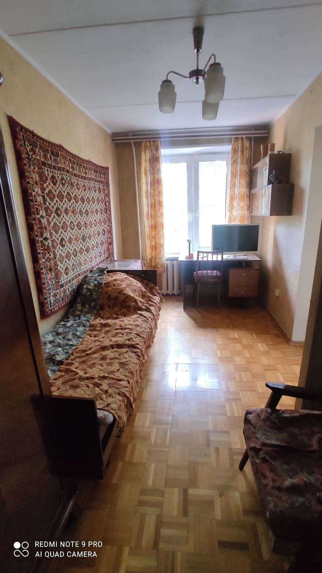 Квартира расположена на второй линии от Ленинского проспекта. Окна выходят в тихий двор. Квартира линейной планировки, комнаты смежные. В большой комнате балкон, в маленькой комнате гардеробная. Санузел совмещённый, ванна сидячая. Пол паркет.