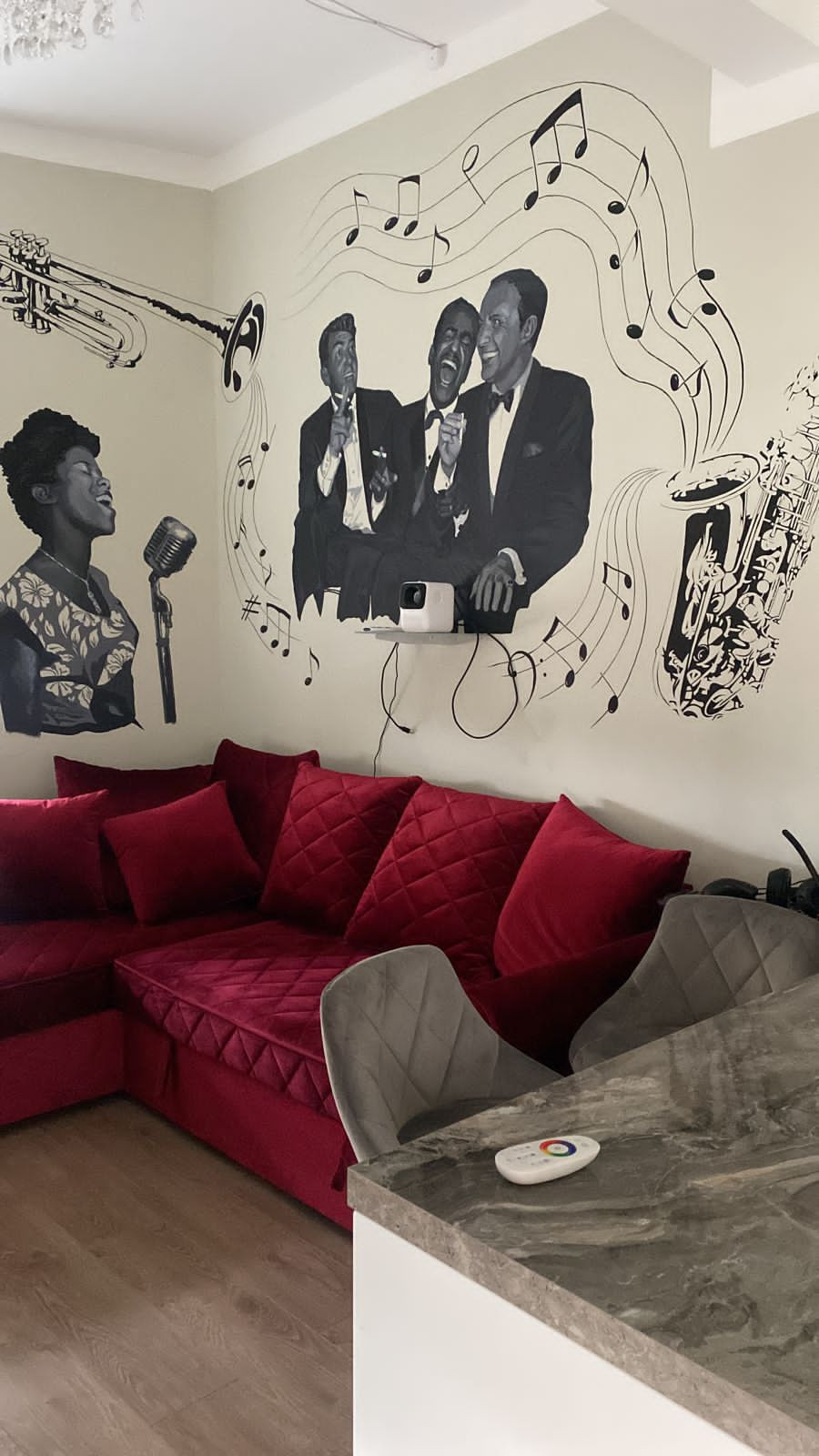 Для музыкантов: цифровое фортепиано P-515, гитарный комбарь, стойки под малый, хэт и райд, большая колонка, к которой можно подключать проектор и по кайфу смотреть всё, что захочется