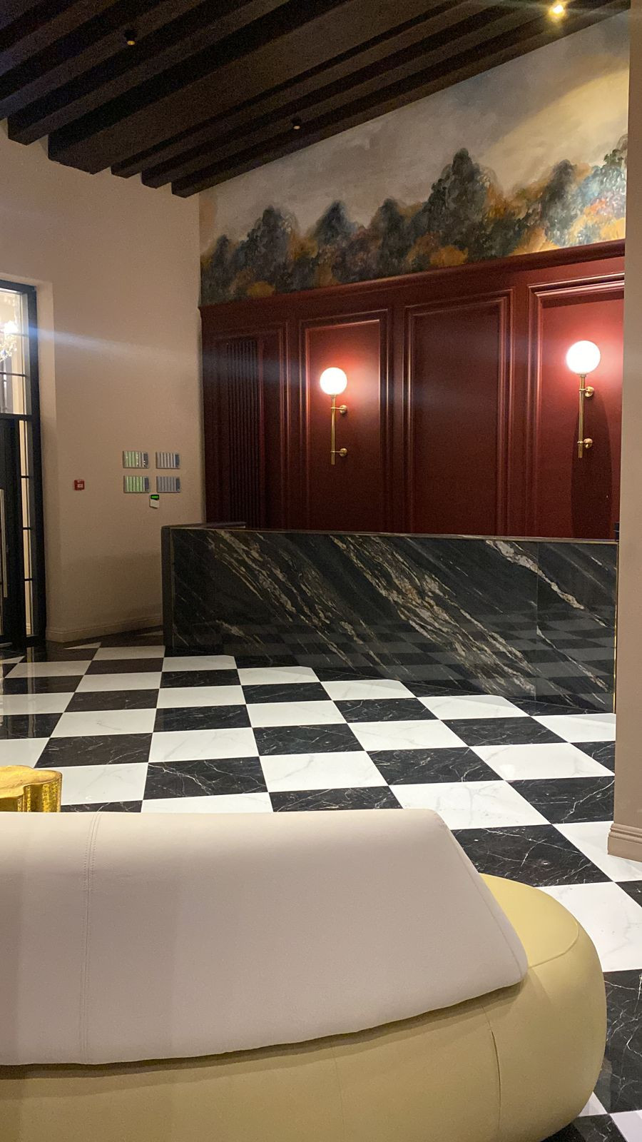 Комплекс также уникальный, со своей территорией, где вскоре откроют кафе и ресторан, вход на территорию по картам через турникеты, лобби, отделанное мрамором и фресками с отдельным вайфаем, коворкинг space