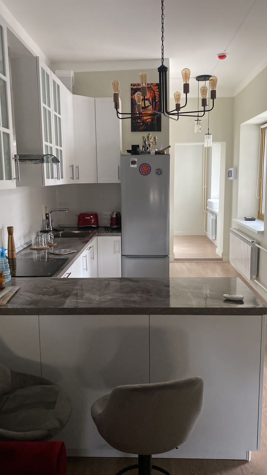 У лофта 4 окна на две стороны, очень много света, вся техника, кроме микроволновки есть, посудомойка тоже, чайник, тостер, проектор