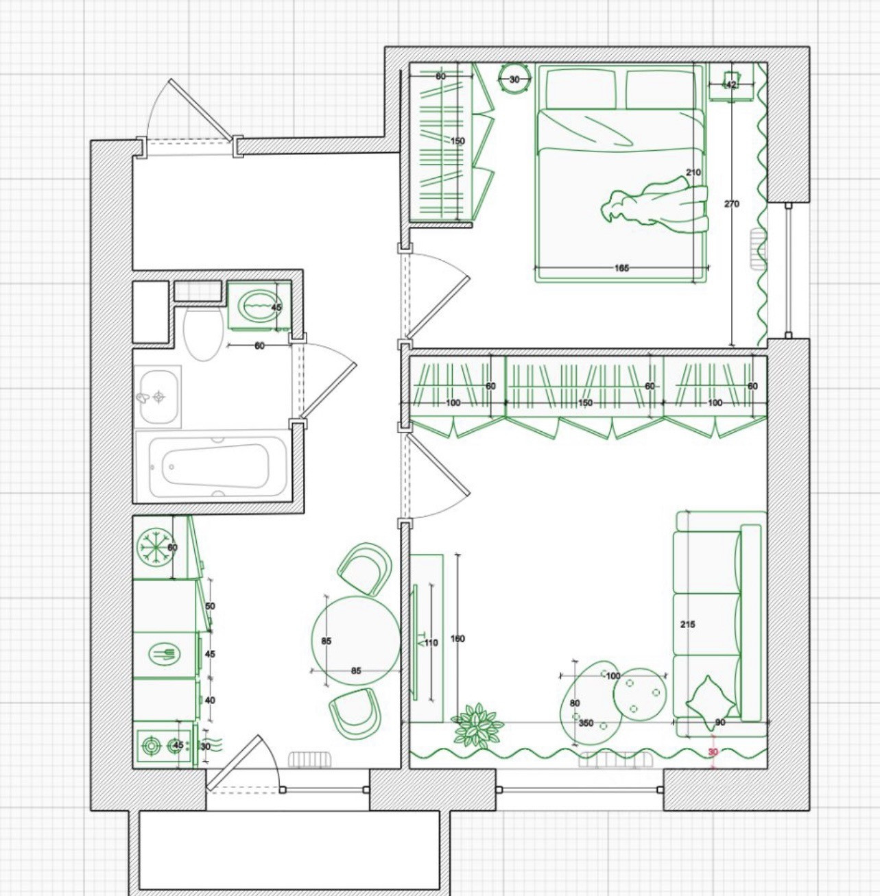 Площадь кухни 6 м2